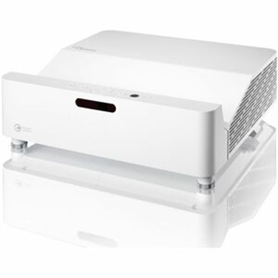 Bright Full HD 1080p laser projector – 4000 lumens. Ultra short throw lens – 100″ image from less than half a meter away. Ultimate control – Crestron, Extron, AMX, PJ-Link and Telnet LAN commands. External power supply – More reliability, portability and energy efficiency The ZH430UST is one of Optoma’s most compact and hassle-free Full HD DuraCore laser projectors to date. Designed for maintenance-free continuous operation, this 4000-lumen projector delivers powerful and eye catching image performance, perfect for meeting rooms and classrooms, the ZH430UST is designed to be used at any time of day. To support Optoma s commitment to sustainability, the ZH430UST cuts power consumption by up to 45% compared to Optoma s lamp-based projectors. Energy-saving DuraCore laser technology ensures a long product lifespan of up to 30,000 hours without the need for additional lamps, requires minimal maintenance, and is mercury-free, further lowering its carbon footprint. Installation and setup are simple with four corner adjustment and the added benefit of an external power supply, offering more reliability, portability and energy efficiency. Designed with the environment in mind, the eco-friendly chassis design is made with up to 50% PCR (Post-Consumer Recycled) plastics and the packaging contains up to 97% recyclable materials. In addition, the compact product and packaging size of the Optoma ZH430UST projector allows 2x more products carried per container, resulting in more efficient logistics to help further reduce carbon emissions. Geared for conference rooms, boardrooms, and other corporate spaces, the ZH430UST features an ultra short throw lens meaning it can project a 100 image from less than 0.5m away, avoiding shadows being cast across the screen from the presenter(s). For ultimate convenience it comes with an RS232 connection for monitoring and controlling and a built-in speaker.