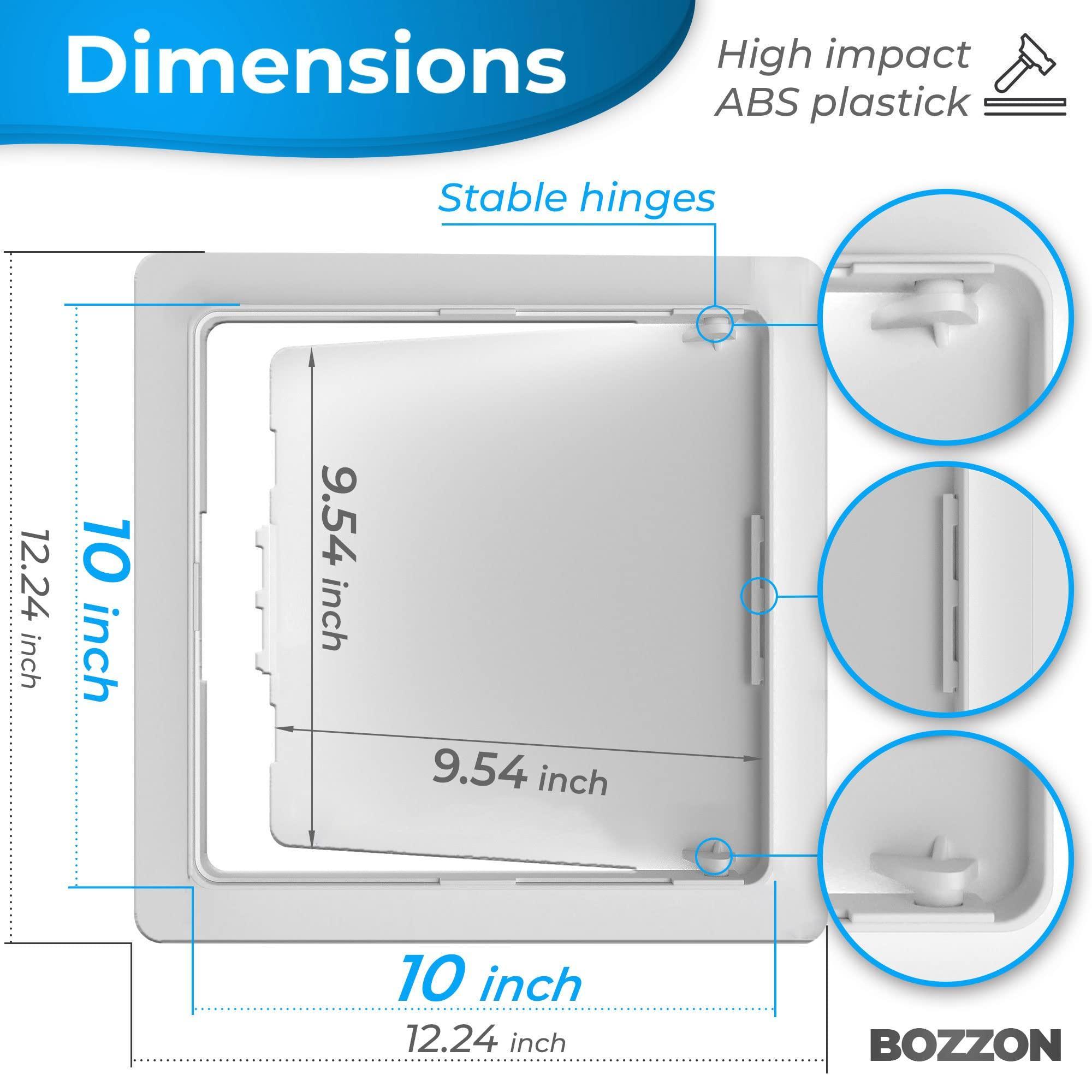 Premium Quality: Made of impact-resistant ABS plastic with UV stabilization, our drywall access panel does not fade in the sun, change color or corrode. Durable plastic textured surface for maximum adhesion, the white finish can be painted in any color or wallpapered. Thanks to the water repellent material, it can also be installed in basements, attics or bathrooms.