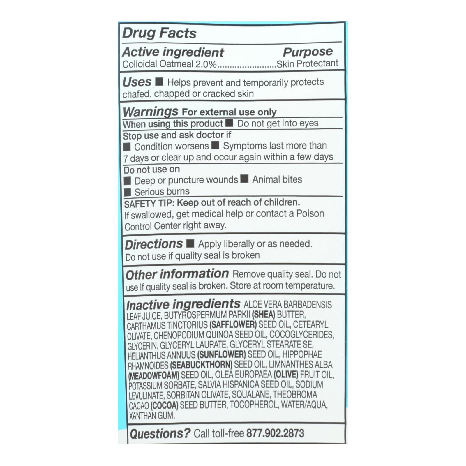Other Information: Remove quality seal. Do not use if quality seal is broken. Store at room temperature. Misc: Unscented with colloidal oatmeal to protect & soothe. 100% vegan. 0% questionable. Paraben free, sulfate free, mineral oil free, petrolatum free, silicone free, cruelty free. We believe that skin wellness means helping your skin thrive with soothing hydration and botanical ingredients. Thrive on! Manufactured in a facility audited for social responsibility. Cruelty free. Acure.com. Questions? Call toll-free 877.902.2873. Made in the USA of domestic & global ingredients & components.