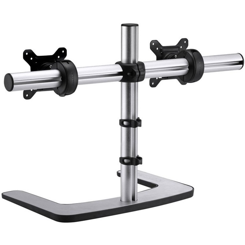 The VFS-DH freestanding desk mount is an ideal accessory for any dual or single monitor application. Both monitors can be independently adjusted up to 20° in any direction and rotated between landscape and portrait orientations. The unique QuickShift™ lever provides independent horizontal adjustment without the need for a single tool. An elegant design with a footprint of 16.61in x 12in leaves your desk clear of clutter. The freestanding base provides flexibility to be located anywhere on the desk. This mount can be converted into a single display configuration by attaching one of the VESA heads directly onto the vertical post.