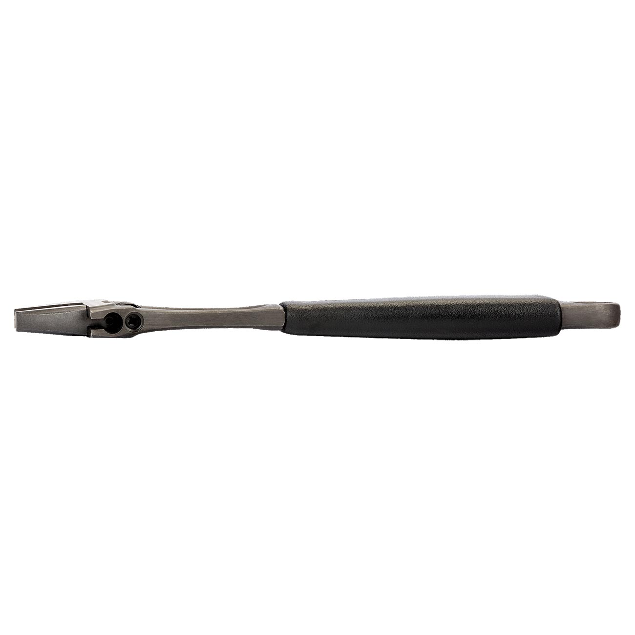 Extra-wide jaw opening with a shorter handle than a standard wrench offers accessibility to work in confined spaces