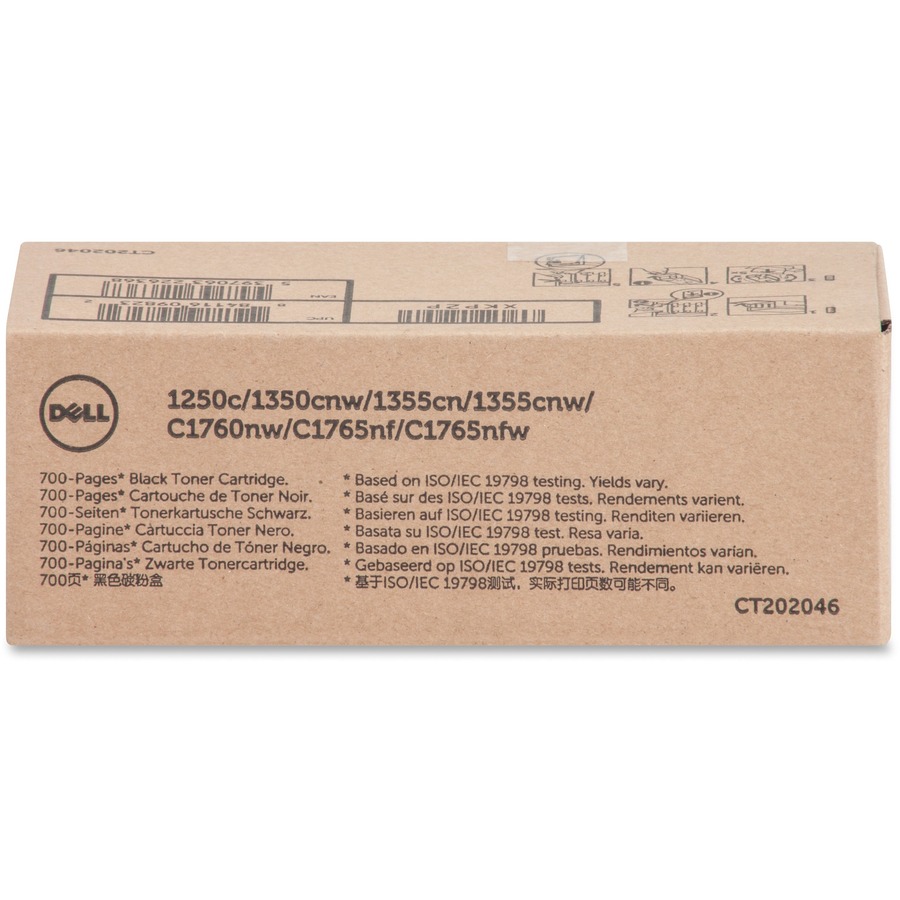 Standard-yield toner cartridge is designed for use in Dell 1250c, 1350cnw, 1355cn, 1355cnw, C1755nf, C1755nfw and C1760nw. Toner delivers excellent print quality and sharp images and text. Cartridge yields approximately 700 pages based on 5 percent page coverage.