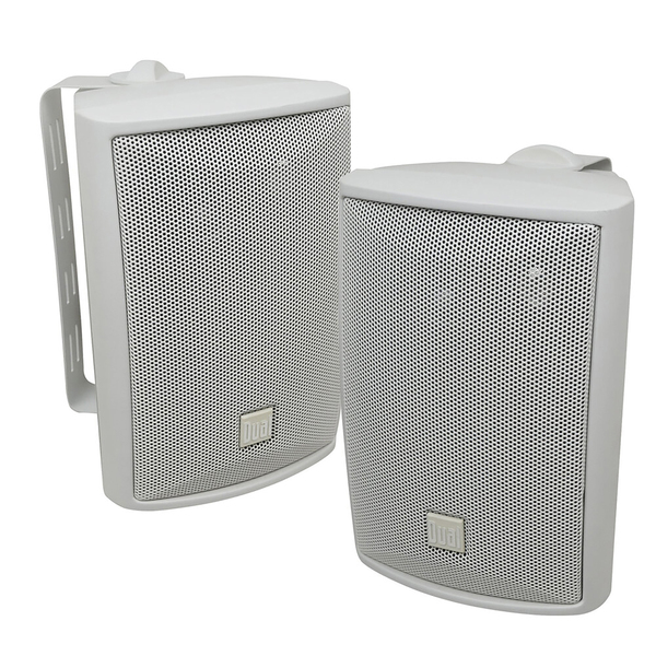 • 50 watts RMS; 200 watts peak power; impedance: 4 ohms to 6 ohms;• Frequency response: 100 Hz to 20 kHz;• 4-in. polyelite PVA surround;• 1.6-in. polypropylene midrange;• 0.78-in. piezo dome tweeter;• 90deg rotating logo for horizontal or vertical placement; install on walls or ceilings;• Weather-resistant with UV-treated ABS enclosure; ideal for covered outdoor areas;• Nonremovable grilles;• Includes 2 multi-angle mounting brackets and thumb screws;• Pair;
