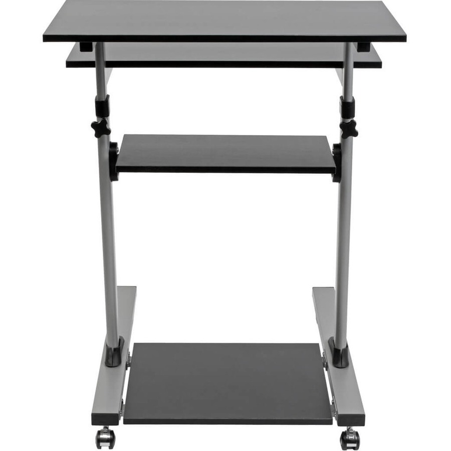This adjustable-height desk on wheels includes four platforms for holding a monitor, laptop, keyboard, CPU, printer, PDU, audio speakers or any other device needed for day-to-day operation. Each shelf supports up to 33 pounds.