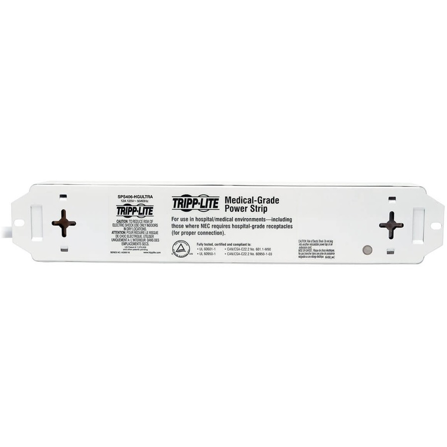 This 120V, 50/60 Hz power strip features a NEMA 5-15P-HG hospital-grade plug and four NEMA 5-15R-HG hospital-grade outlets that include integrated locking safety covers. Plus, 1410 joules of surge suppression prevent dangerous power spikes that can damage connected equipment and destroy data. A 15A resettable circuit breaker also protects your equipment from overloads. An LED indicator tells you power is present and protected from surges (with no ground faults or line/neutral reversals).