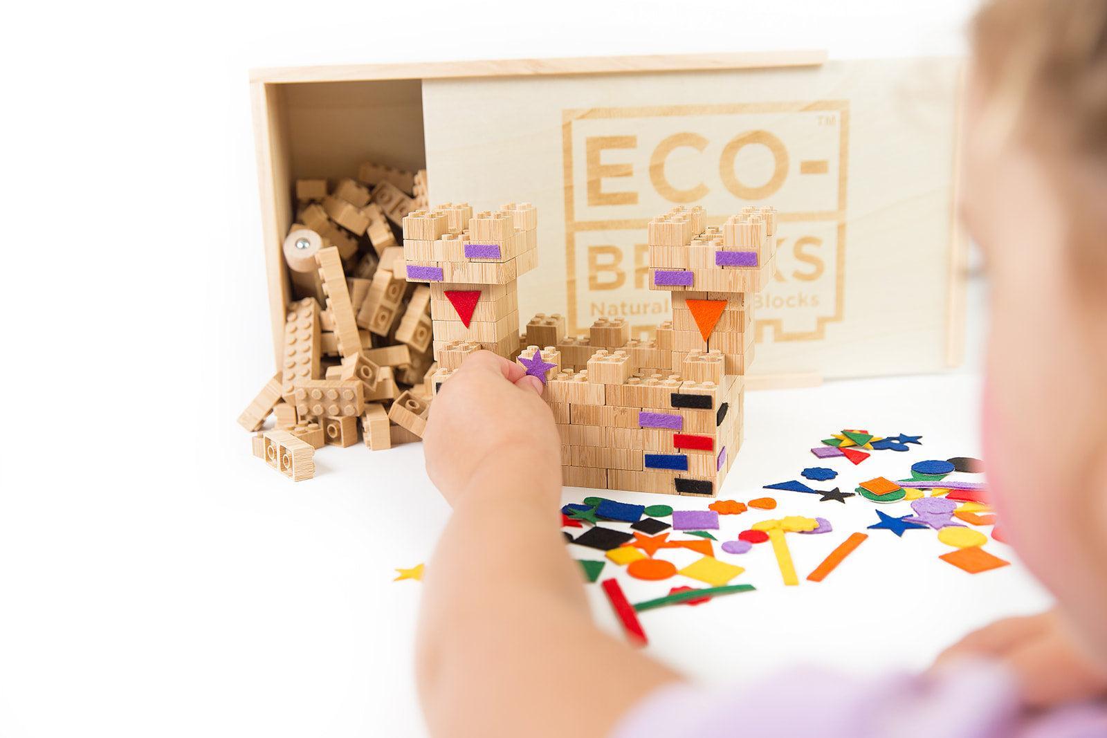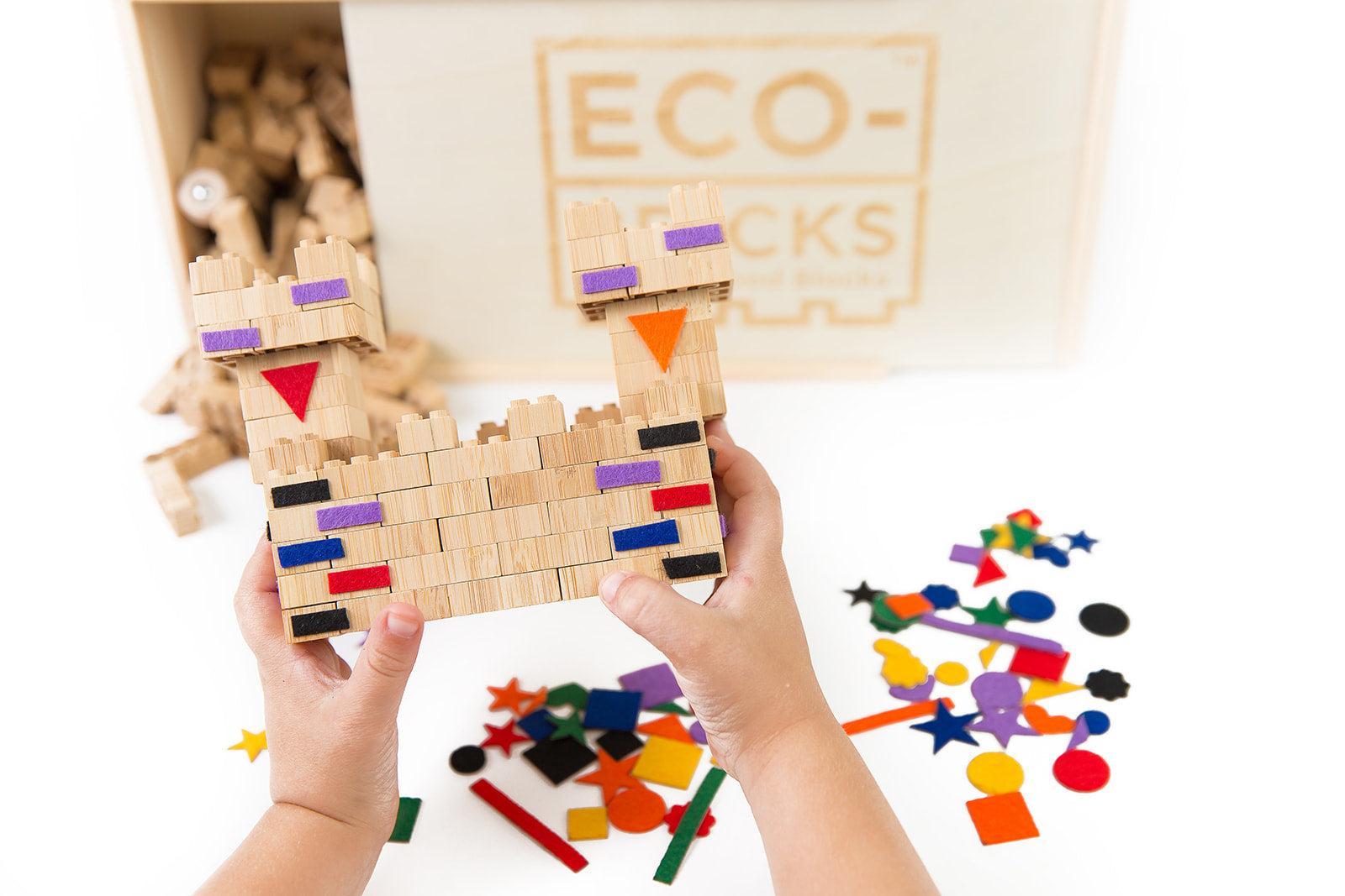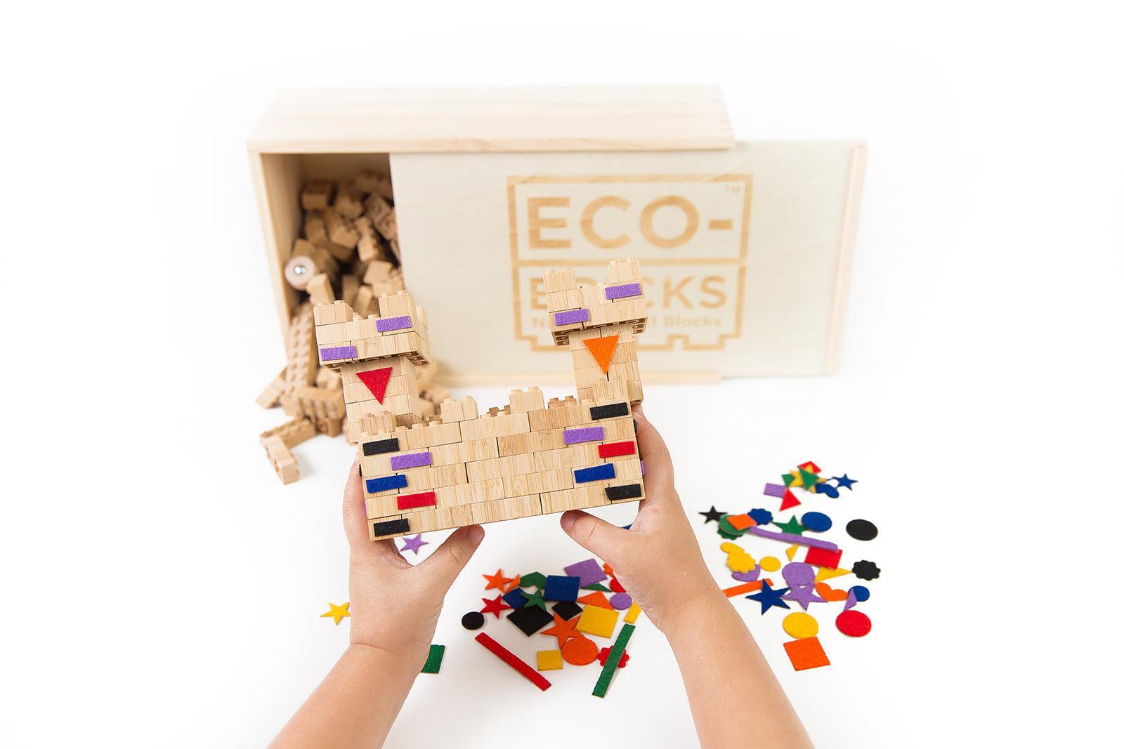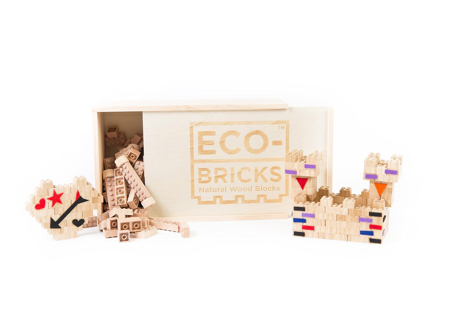 Eco-bricks™ Bamboo + felt sets are natural and biodegradable bamboo construction blocks and come with adhesive felt shapes that add an additional layer for sensory development and customization. These removable felt-shaped stickers are spun from recycled plastic bottles, therefore, sustainable, too! Durable, beautifully crafted, and even compatible with most of the other major interlocking block brands (so you don’t have to start your whole collection all over again), the Eco-Bricks™ Bamboo 250-Piece set is a brilliant first step into healthier, greener, construction block fun. Benefits: Bamboo has antimicrobial properties – stays clean in high use! Bamboo is also fast-growing and carbon neutral These interlocking blocks aren’t just fun – they are friendly to the planet, too! Features: Made from precision-carved natural bamboo and recycled plastic bottles spun felt-shaped stickers Compatible with plastic blocks Encourages fine motor skills and environmental awareness Assorted style blocks for endless design configurations High-quality design for lasting durability Recommended Age 4+ Includes: 8 – 4 Dot Bamboo Covers 40 – 4 Dot Bamboo Blocks 172 – 8 Dot Bamboo Blocks 10 – 8 Dot Bamboo Covers 14 – 16 Dot Bamboo Bases 6 – 16 Dot Axel with Wheels Removable felt shaped stickers Packaged in a laser engraved wooden storage box. WARNING: CHOKING HAZARD – Small parts. Not intended for children under 3 years. Our mission at Once-Kids is to make toys that kids make their own while helping save our world’s oceans.