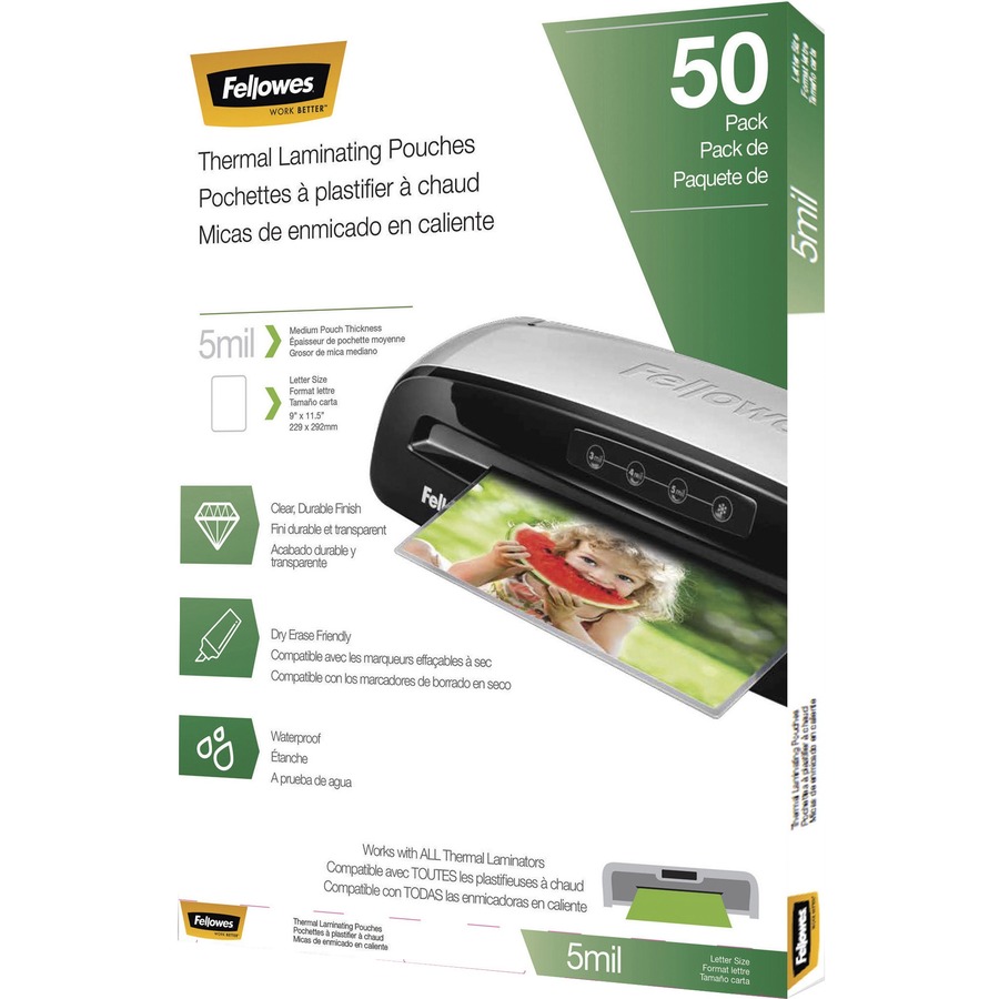 Laminating pouches are designed with quality, photo-safe materials to provide excellent clarity and durability. They preserve and protect important letter-size documents with medium thickness. These thermal hot pouches can be used with dry-erase markers and are compatible with all thermal laminators.
