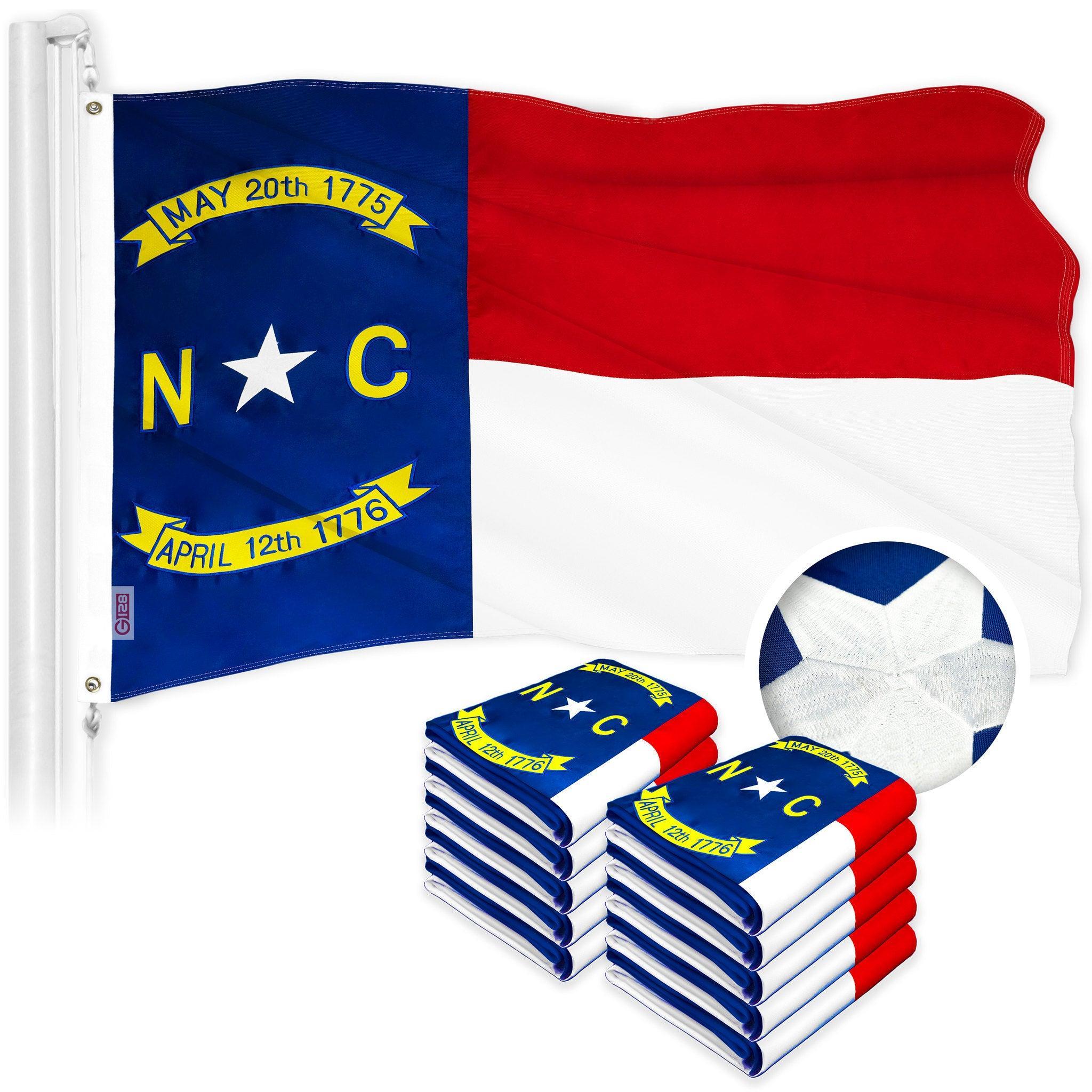 G128 10 Pack: North Carolina State Flag | 2×3 Ft | ToughWeave Series Embroidered 300D Polyester | Embroidered Design, Indoor/Outdoor, Brass Grommets
