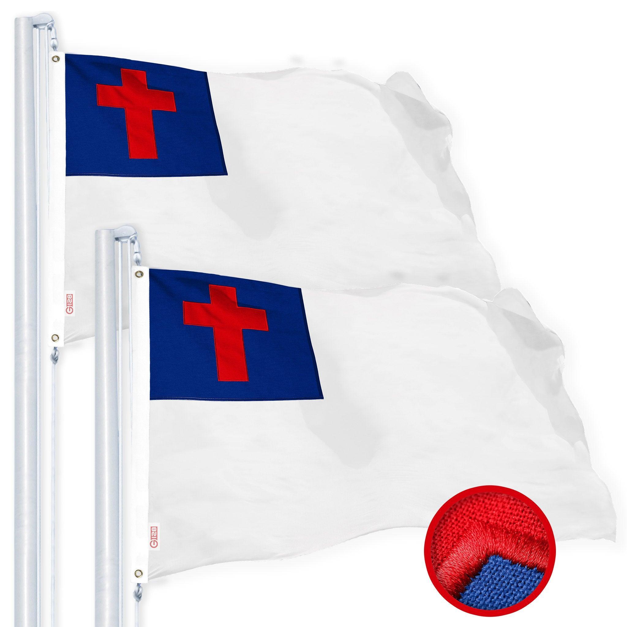 G128 2 Pack: Christian Flag | 2.5×4 Ft | StormFlyer Series Embroidered 220GSM Spun Polyester | Religious Flag, Embroidered Design, Indoor/Outdoor, Brass Grommets, Heavy Duty, All Weather