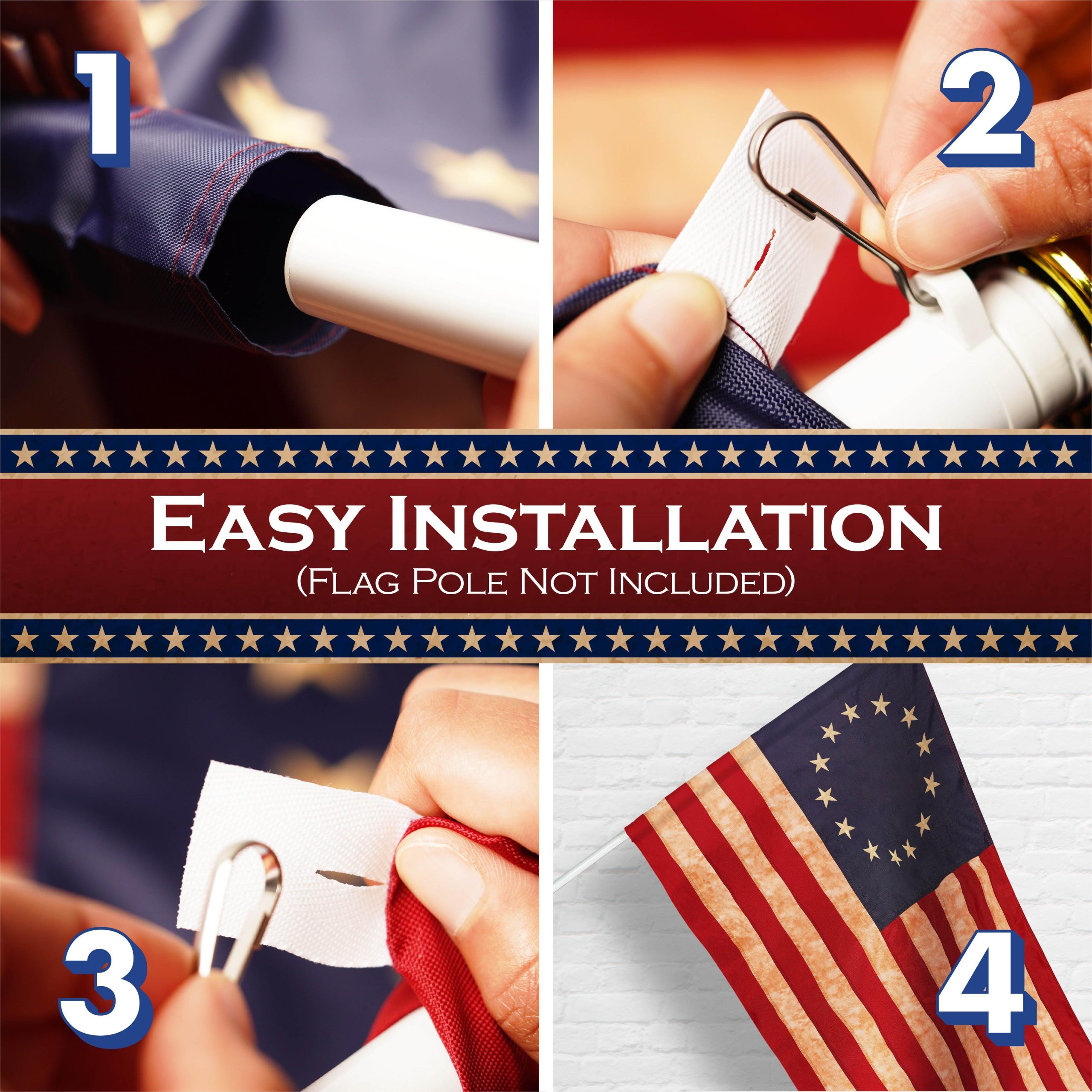 G128 5 Pack: Betsy Ross Tea-Stained Flag | 2.5×4 Ft | ToughWeave Pro Series Pole Sleeve Embroidered 420D Polyester | Historical Flag, Embroidered Design, High Quality, NO Flagpole Included