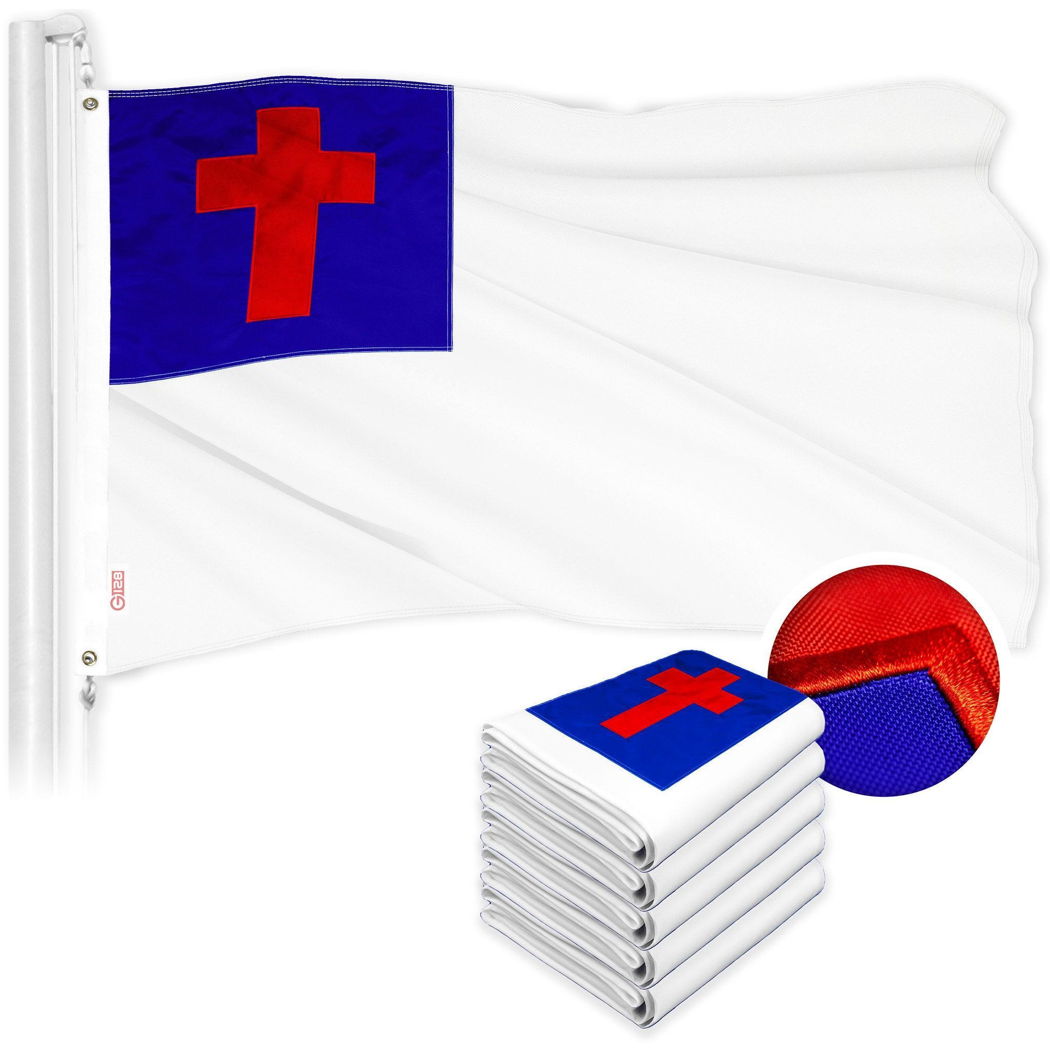 G128 5 Pack: Christian Flag | 2.5×4 Ft | ToughWeave Series Embroidered 300D Polyester | Religious Flag, Embroidered Design, Indoor/Outdoor, Brass Grommets