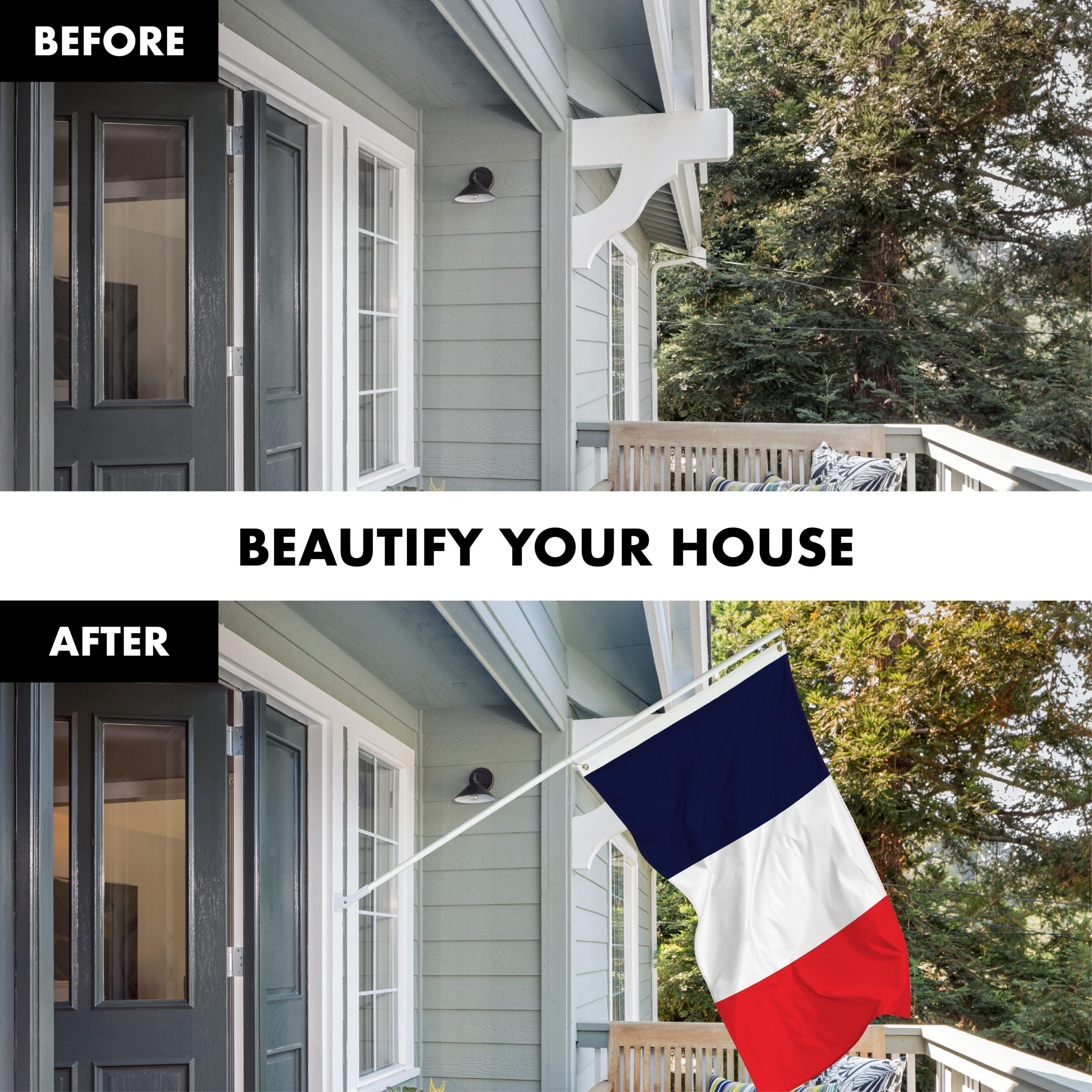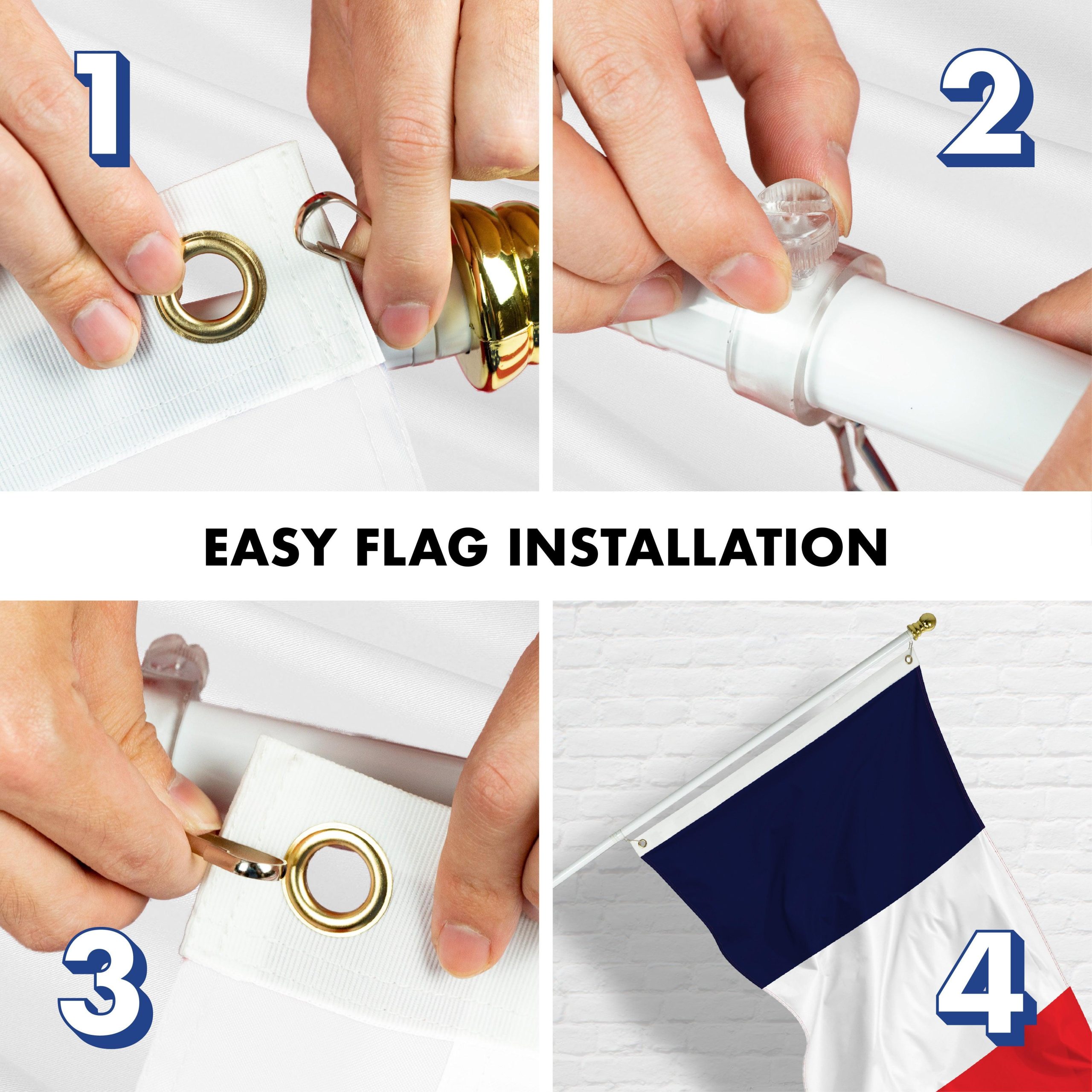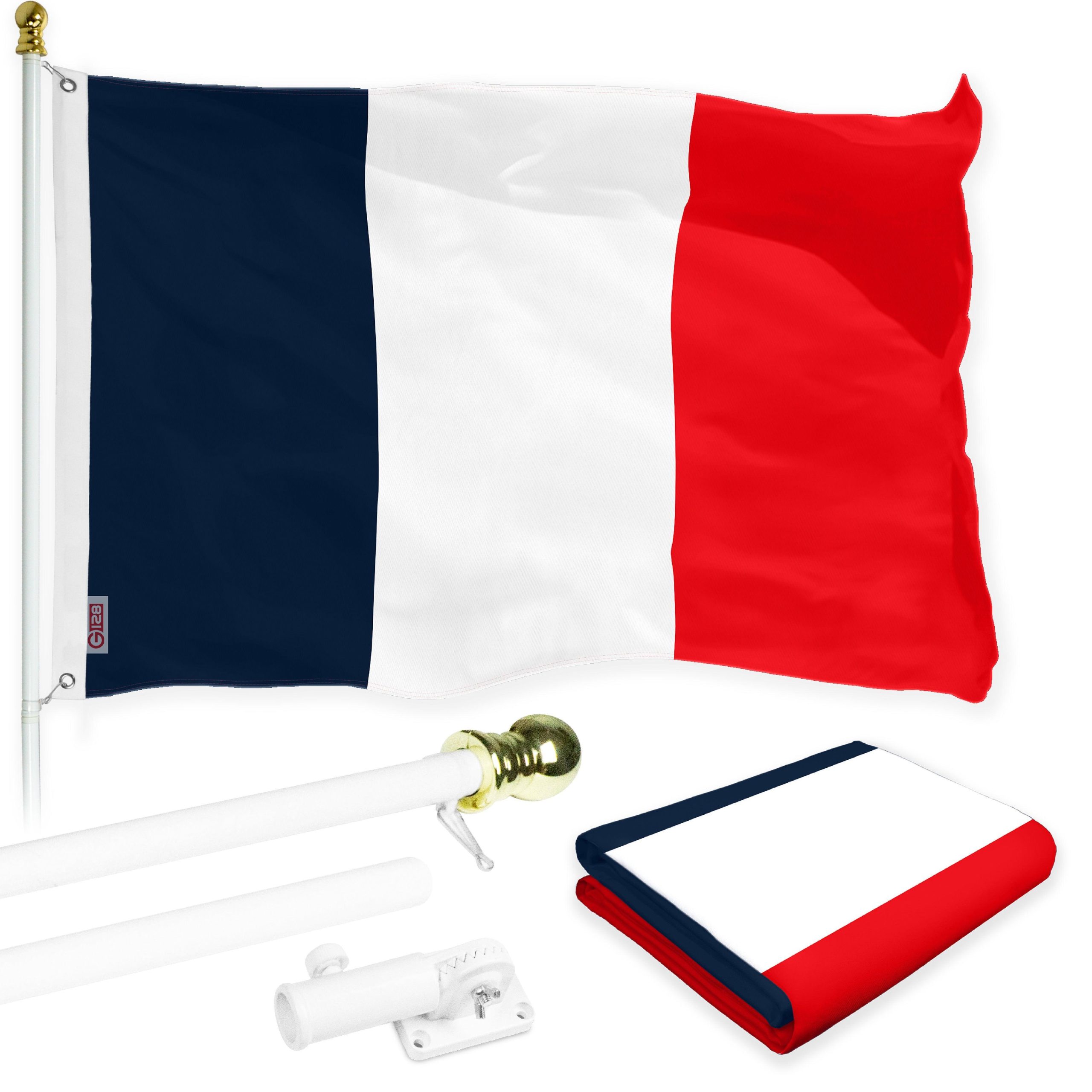 DELUXE PACKAGE: G128 is including a 3×5 FT Printed 150D NEW Navy Blue France flag with brass grommets for this deluxe flag and flagpole package! All the guarantees of the quality of our G128 flag is included in this package.