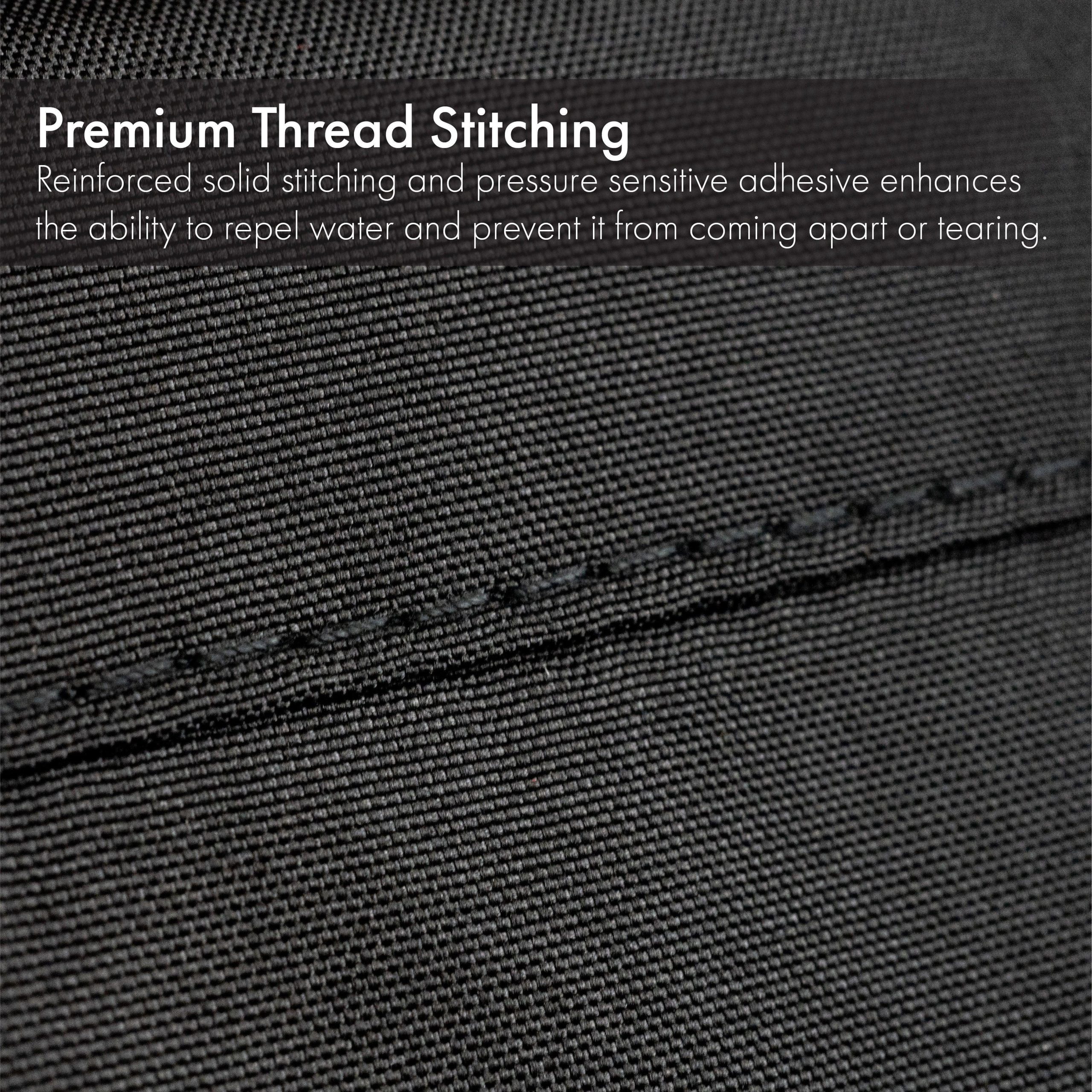 Built to Last. Reinforced solid stitching and pressure sensitive adhesive enhances the ability of G128’s grill cover to repel water and prevents it from coming apart or tearing.