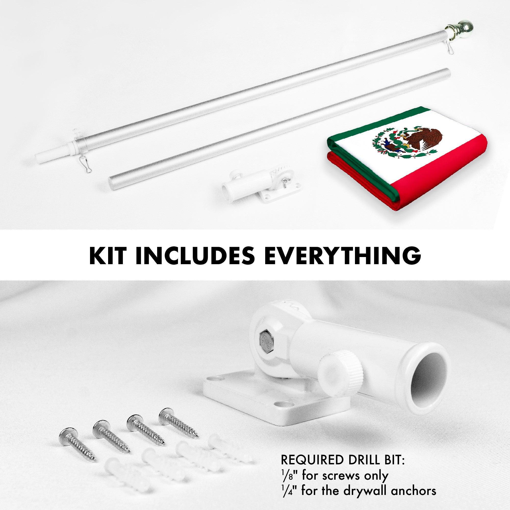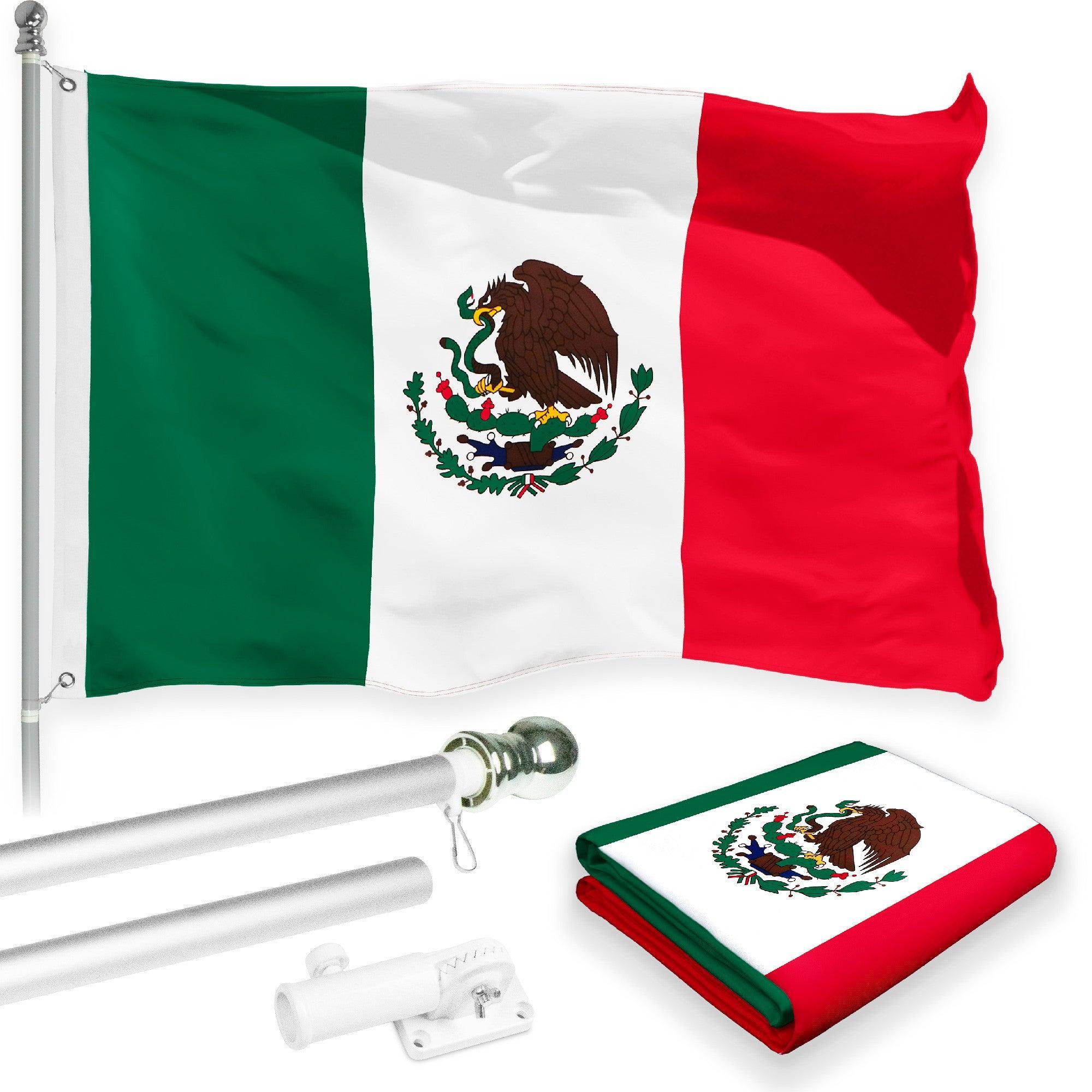 G128 Combo Pack: 5 Ft Tangle Free Aluminum Spinning Flagpole (Silver) & Mexico Mexican Flag 2×3 Ft, LiteWeave Pro Series Printed 150D Polyester | Pole with Flag Included