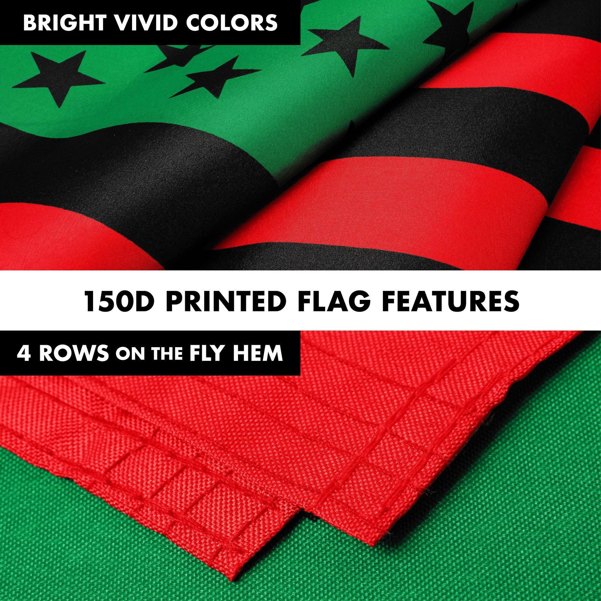 G128 Combo Pack: 6 Ft Tangle Free Aluminum Spinning Flagpole (Silver) & Afro American Black Liberation BLM Flag 3×5 Ft, LiteWeave Pro Series Printed 150D Polyester | Pole with Flag Included