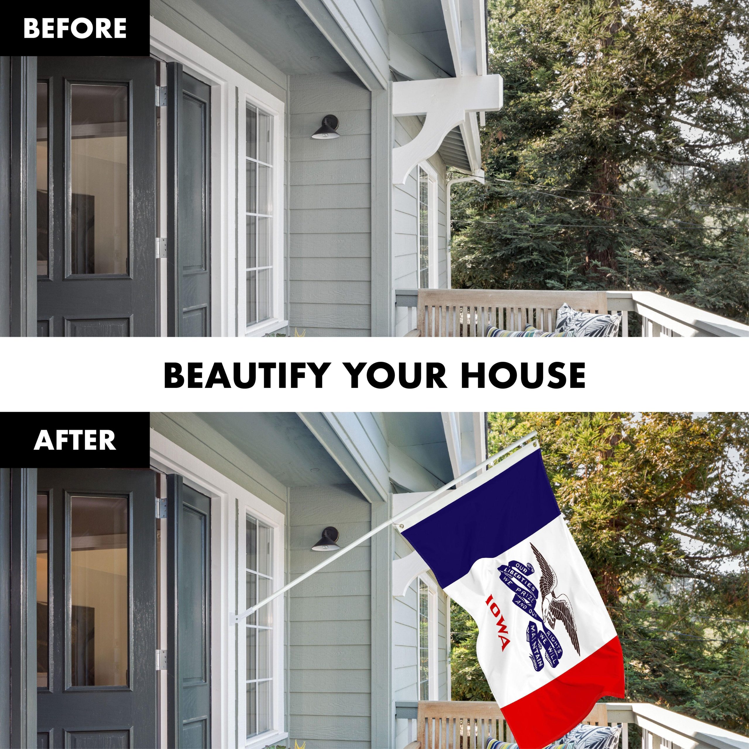G128 Combo Pack: 6 Ft Tangle Free Aluminum Spinning Flagpole (White) & Iowa IA Deluxe State Flag 3×5 Ft, ToughWeave Series Embroidered 300D Polyester | Pole with Flag Included