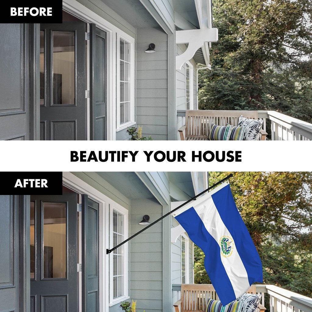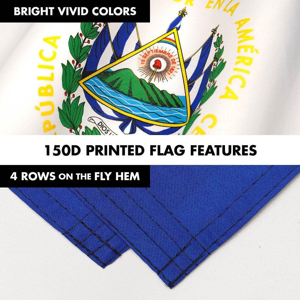 G128 Combo Pack: 6 Ft Tangle Free Spinning Flagpole (Black) & El Salvador Flag 3×5 Ft Printed 150D Polyester, Brass Grommets (Flag Included) Aluminum Flag Pole