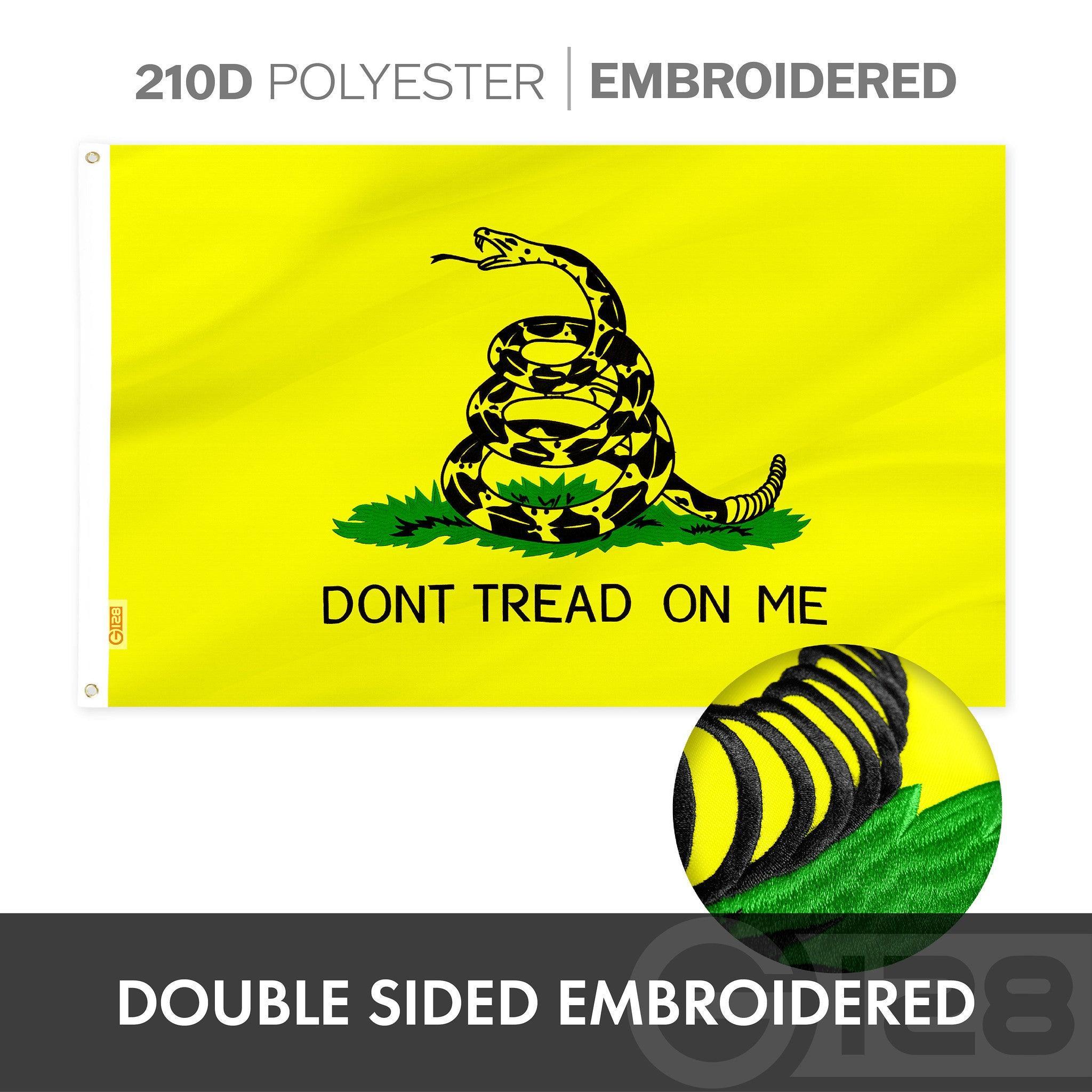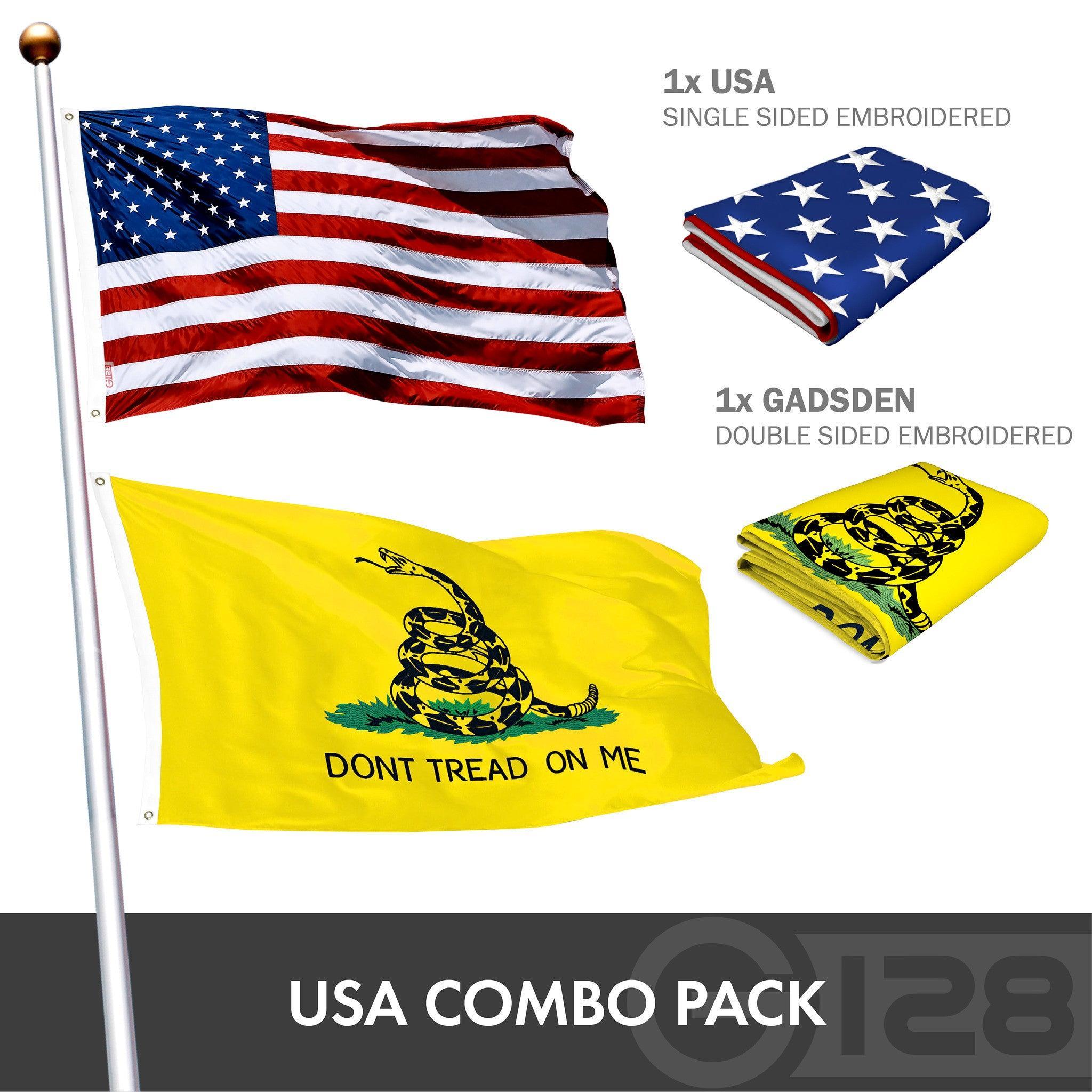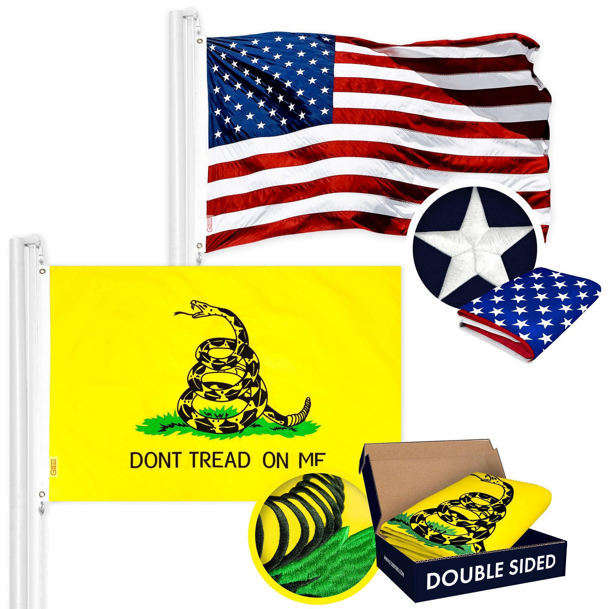 (1) USA American Flag 1.33×2 Ft 210D Embroidered Stars Sewn Stripes Polyester and (1) Gadsden Flag 1.33×2 Ft 210D Embroidered Bear Polyester Double Sided 3ply