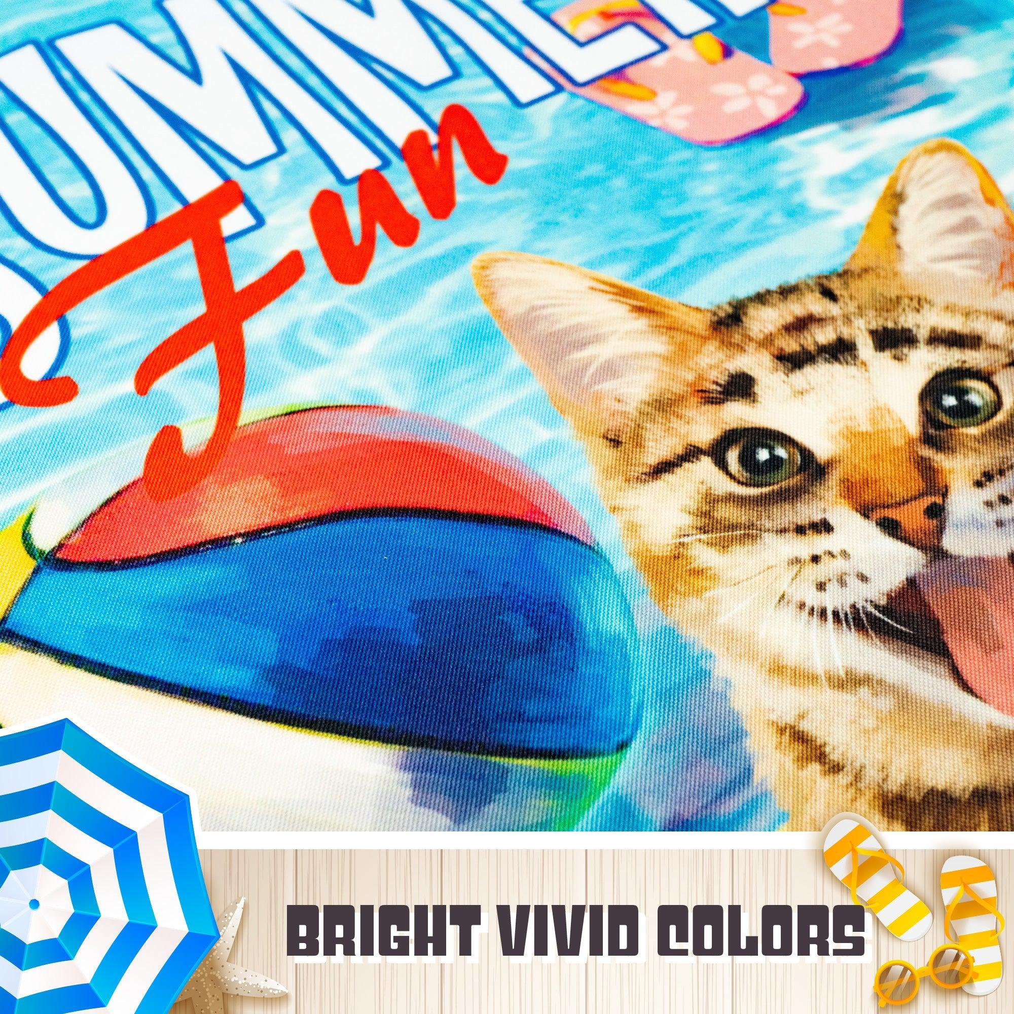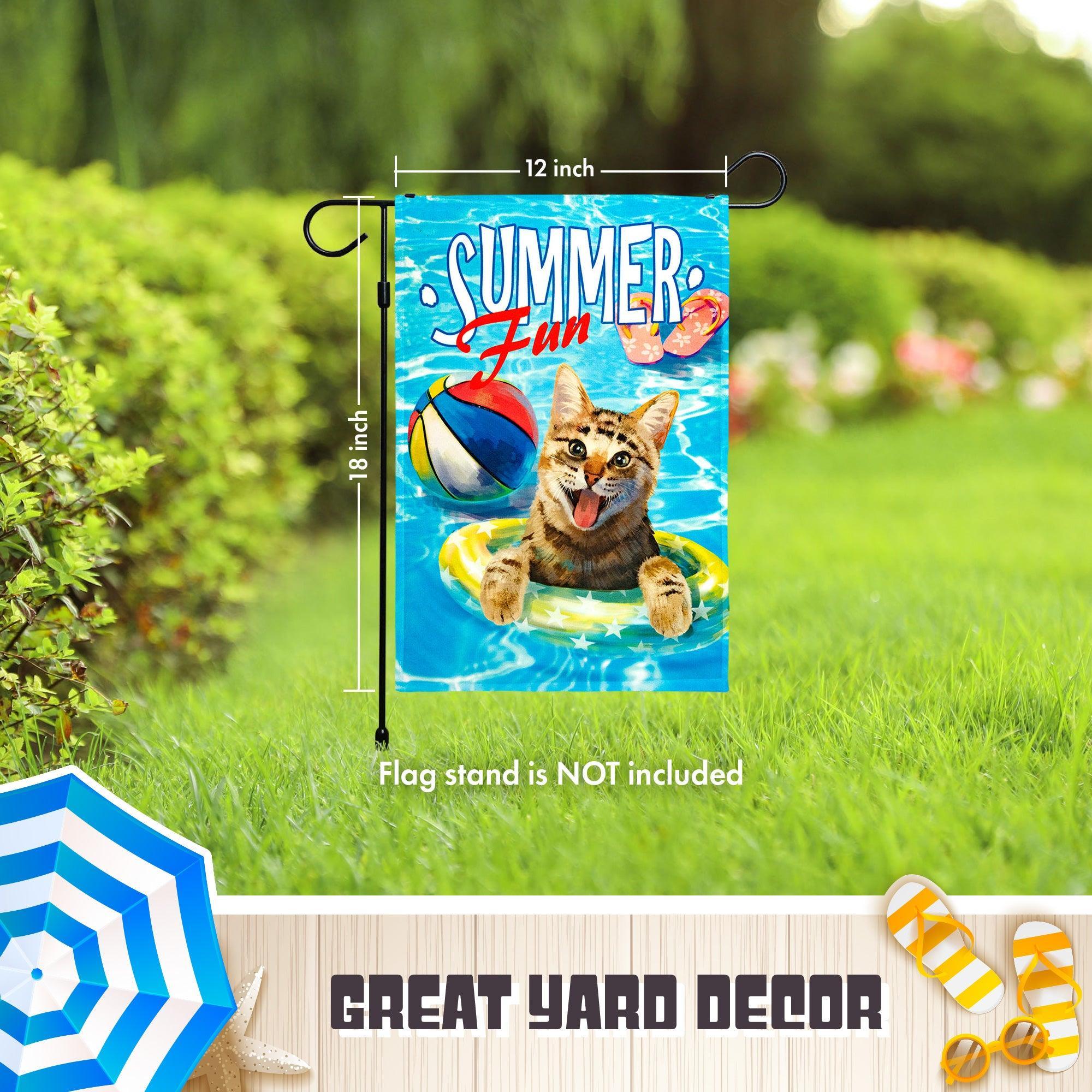 G128 Summer Fun with Cat in Pool Garden Flag | 12×18 Inch | Printed 150D Polyester – Summer Decoration, Rustic Holiday Seasonal Outdoor Flag