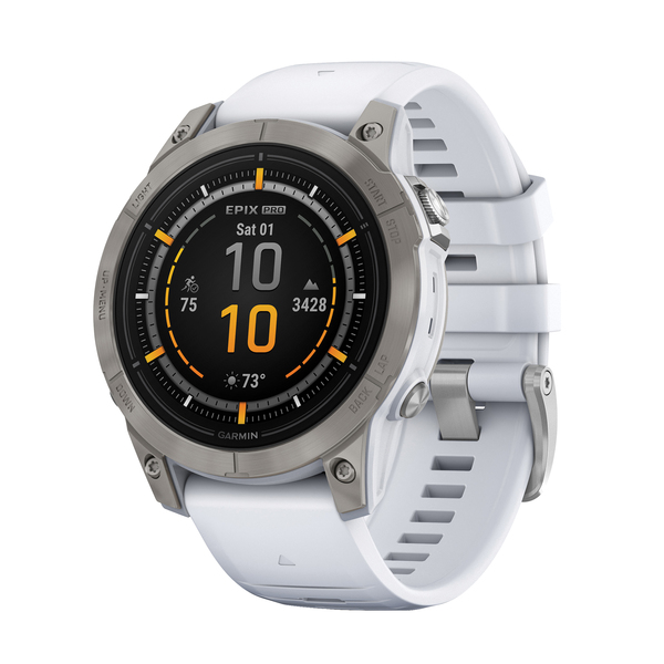 • Ultimate, high-performance smartwatch features a 1.3-in. always-on, stunning AMOLED display, 47-mm case, and scratch-resistant sapphire lens with titanium bezel ;• Built-in LED flashlight with variable intensities and strobe modes gives you greater awareness while you train at night and provides convenient illumination when you need it;• Hill score feature measures your running strength and endurance during ascents and gauges your progress over time;• Endurance score feature combines training data from all your athletic pursuits to help you understand how training impacts your overall endurance;• Gain a more complete picture of your overall health, training, and recovery with 24/7 health and wellness monitoring features such as HRV status and Pulse Ox (this is not a medical device, and data presented is intended to be a close estimation of metrics tracked; Pulse Ox not available in all countries);• Prioritize your rest and recovery with advanced sleep monitoring;• Morning report and training readiness features combine important health and training data for easier interpretation and analysis;• Focus your training with wrist-based running power, strength training features, and advanced pacing modes to gauge your output on race day;• Advanced navigation sensors combined with multi-band reception technology deliver more accurate positioning, and multi-GNSS with SatIQ(TM) technology delivers improved coverage in challenging environments while also optimizing battery life ;• Preloaded maps for thousands of golf courses and ski resorts worldwide; use TopoActive maps to keep your explorations on track, and never miss a turn with Up Ahead navigation prompts;• Track your favorite sports with even more activity profiles, such as soccer, football, baseball, volleyball, ice hockey, and racquet sports;• Stay connected with smart notifications, music storage, and more (compatible smartphone required);• Battery life: up to 16 days in smartwatch mode; up to 30 hours in GPS mode;• Includes USB-C(R) charging/data cable and documentation;• Titanium Bezel with Whitestone Band;