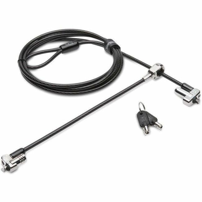 The two lock heads are designed for laptops and other devices, while using the same key so you can quickly secure a laptop as well as a monitor, docking station or hard drive.