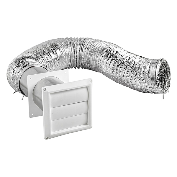 • Opening/closing flaps prevents outside elements from entering the vent;• Flexible laminated foil design for easier installation;• Ideal for both gas and electric dryer installations;• UL(R) 2158A listed and labeled as a clothes dryer transition duct;• UV inhibitor is used to help prevent the premature fading of vent;• Includes 4 in. white plastic louvered vent with 11 in. tail pipe, 4 in. white plastic trim plate, 4 in. x 8 ft. UL(R) 2158A laminated transition duct, and 4 in. galvanized tension clamps;
