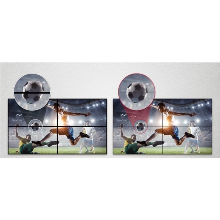 The VSM5J series includes an image improvement algorithm that can reduce image gaps among tiled displays when playing back videos. Objects located on the bezel boundaries are adjusted for a seamless viewing experience.
