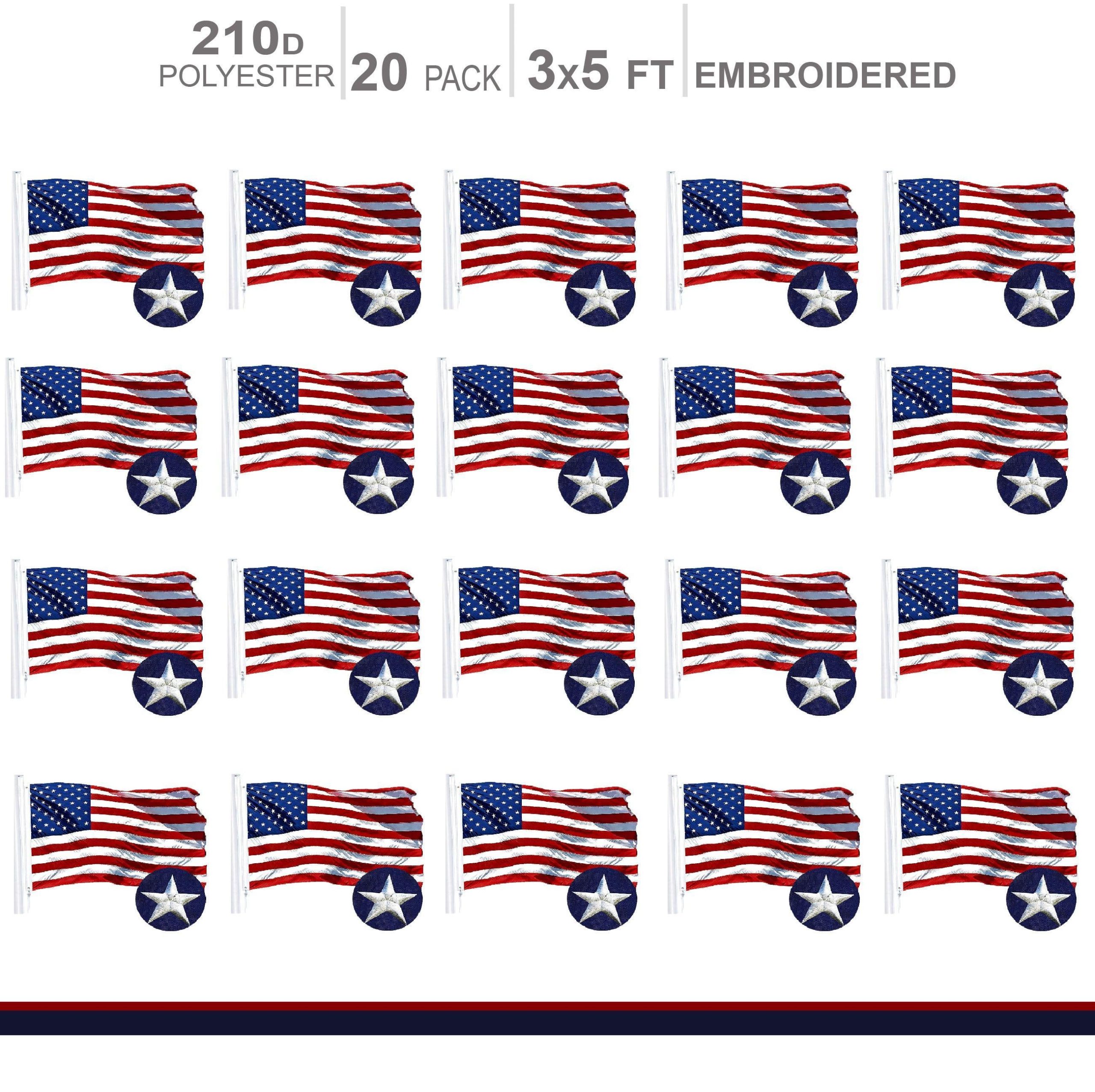 MULTI PACK: American Flag 210D Embroidered Polyester 3×5 Ft – 20 PACK