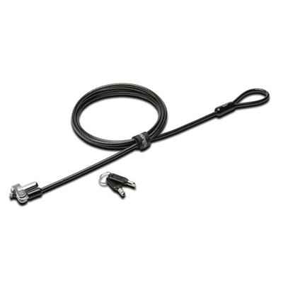 OVERVIEW: From the industry leader in physical device security for 25 years, Kensington has developed the strongest locking solution to secure the latest Dell laptops and tablets that have a wedge lock slot. The N17 Keyed Laptop Lock utilizes a unique lock engagement, creating a strong and reliable connection between the lock head and slot. The 5mm Keying System with anti-pick technology provides flexibility as part of Kensington s unparalleled robust custom keying solution for IT managers. A carbon steel cable deters cutting attempts and the pivot & rotate hinge diverts the cable away from other peripherals. FEATURES & BENEFITS: Tough lock head that fits seamlessly into the latest Dell laptops and tablets with a wedge-shaped lock slot. Unique lock engagement creates the strongest connection between the lock head and wedge-shaped lock slot. 5mm Keying System featuring patented anti-pick Hidden Pin Technology is compatible for custom solutions across different styles of Kensington locks. Carbon steel cable is cut-resistant and anchors to desk, table or any fixed structure. Pivot and rotate cable provides superior laptop engagement. Independently verified and tested for industry-leading standards in torque/pull, foreign implements, lock lifecycle, corrosion, key strength and other environmental conditions. Register & Retrieve program allows you to order replacement keys. Master Access allows both the user and administrators to unlock or reset locks at any time. TAA Compliant