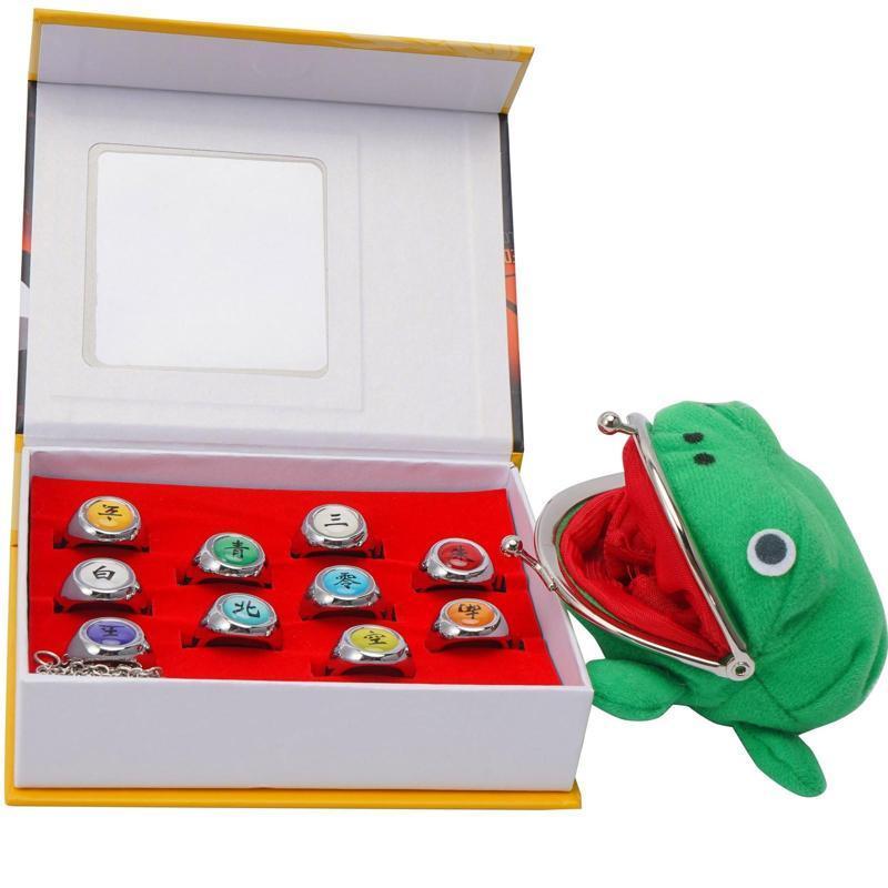 Materials: The rings are made of high quality and durable steel, which provides smooth and long life, and also the best choice of accessories you can get for fans who wants to cosplay as from the organization. Set includes 10 Akatsuki rings, chain and Naruto green frog wallet.