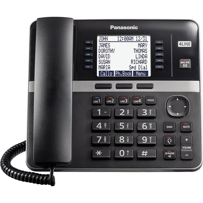 The Panasonic KXTGWA40B Desk Phone Accessory connects to the corded Base Station KXTGW420B, sold separately for your home office or small office. Connect up to four telephone lines and grow this business phone system as your business grows, connecting up to 9 extensions total to the base unit for a complete, customizable phone system. Enjoy features like unittounit intercom so you can talk to your coworkers, or dedicated donotdisturb button for when you want to focus on work. A programmable speeddial allows you to store up to 30 numbers and dial with the push of a button. And, this corded phone desk extension doesn t require a landline simply plug into a power outlet and wirelessly connect to the main base unit. DECT 6.0 technology ensures you have longrange, interferencefree call quality.