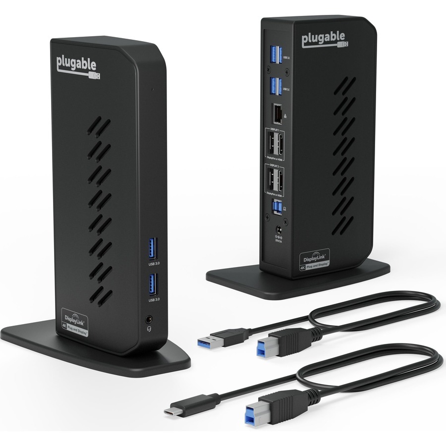 Plugable UD-6950Z USB 3.0 Dual 4K Display Vertical Docking Station, USB 3.0 Type-A to Type-C Cable, USB 3.1 Type-C to Type-C Cable, Power Adapter (US AC Wall Outlet Plug, 20V@2A), Quick Installation Guide