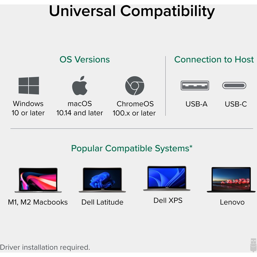 - Compatibility – Laptop docking station is compatible with Windows 11, 10, 8.x, and 7, ChromeOS 100+, and macOS 10.14+. Plug and play driver installation via Windows Update; manual driver installation on Mac. Linux not supported. Dock does not charge host PC.