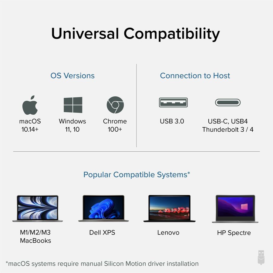 Silicon Motion driver (SMI) download is required for Windows. SMI Instant View driver download is required for Mac.