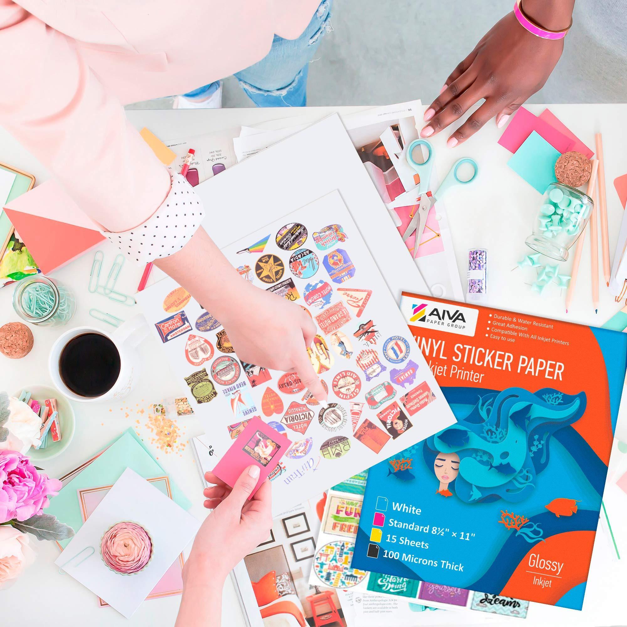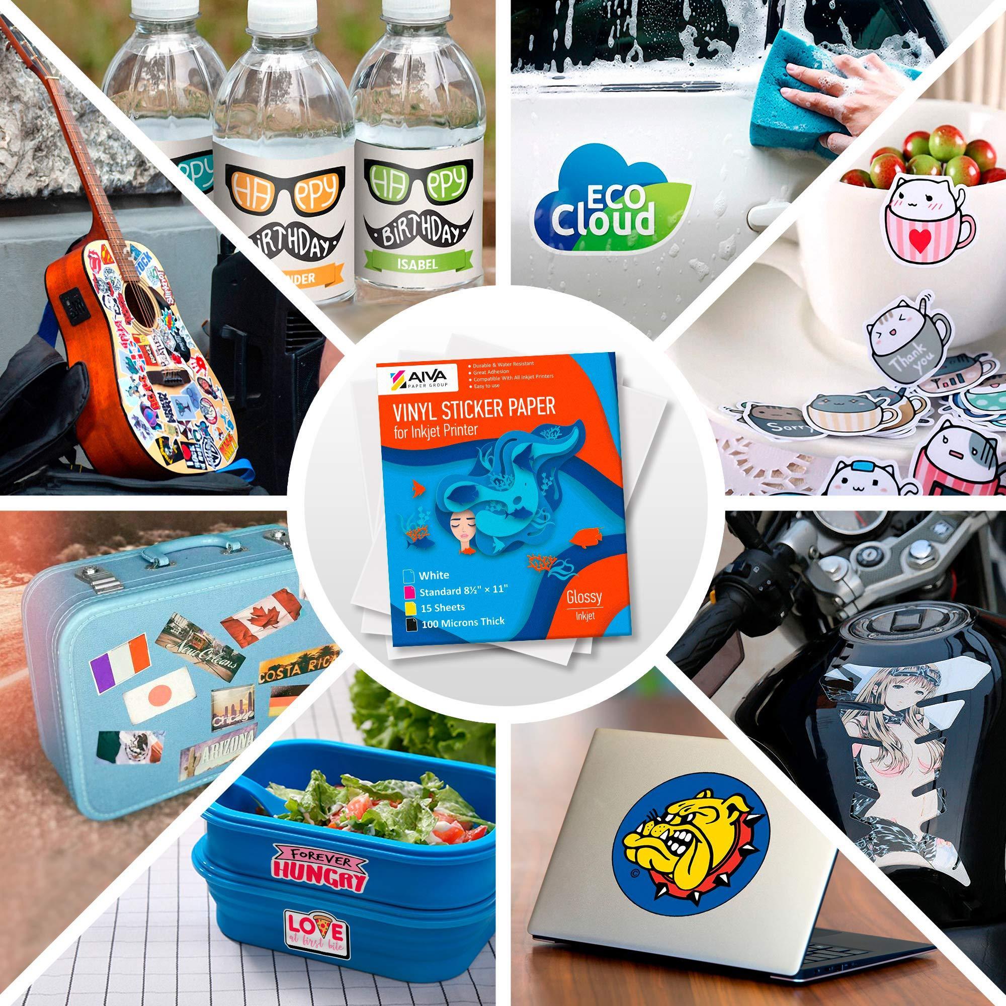 High-Quality Printable Vinyl Paper – set includes 15 white vinyl sheets of Printable Sticker Paper for printer, Glossy finish. US Standard Letter Size – 8.5″x11″. Suitable for High resolution and clear image quality