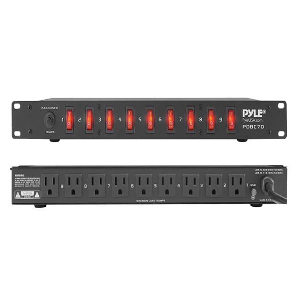 Pyle PDBC70 9-Outlet 15-Amp 150-Joules Power Supply Control Unit, AC Noise Filter, Steel Chassis, Rack Mountable, PDBC70