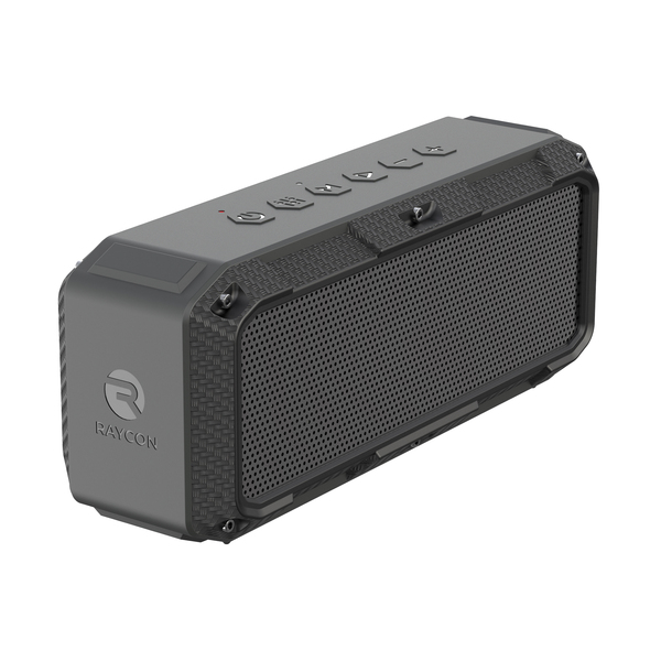 • 20-watt RMS speaker system with 47-mm drivers;• Frequency response: 10 Hz to 40 kHz;• Bluetooth(R) v5.2; operating range of about 32 ft. (10 m); built-in speakerphone;• Multi-link allows pairing of 2 like speakers together (second speaker sold separately) to create a larger, more immersive sound system;• Inputs include aux and microSD(TM) Card ;• Raycon(R)-curated 3 sound-profile sound equalization for booming sound ;• MIL-STD-810 impact tested with durable outer shell that is scratch-resistant and has a shock-absorbent rubber lining for 360deg coverage; dustproof for reliable performance;• Waterproof (IP67) for all conditions including the shower and outdoor use ;• Universal mounting options with neodymium magnetic base, 1/4-in. x 20 universal mount, and carabiner clip;• Up to 15-hour battery life; 3 hours charging time;• Dimensions: 7.17 in. L x 2.21 in. W x 2.91 in. H (182 mm x 56 mm x 74 mm);• Includes USB-C(R) charging cord and built-in steel carabiner;