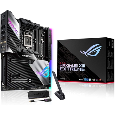 Asus ROG Maximus XIII Extreme (WiFi 6E) Z590 LGA 1200(Intel 11th/10th Gen) EATX gaming motherboard (PCIe 4.0, 18+2 power stages, 5x M.2, 10 Gb & Intel 2.5Gb LAN,Thunderbolt 4 onboard, 1.77″ Livedash OLED and AURA RGB lighting)