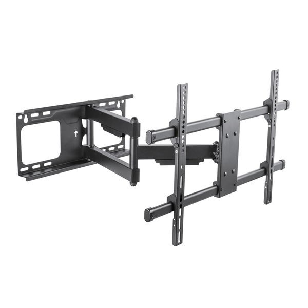 • Fits TVs from 37 in. to 80 in.;• Supports up to 130 lbs.;• Installs in 2 studs;• Single arm;• Depth: 2.7 in.;• Tilt amount: +5deg to -15deg ;• Swivel: 180deg ;• Extension: 24.2 in.;• Simple and easy to install and operate;• Offers full motion capabilities ;• Features several state-of-the-art safety and security features;• Integrated cable management;• VESA(R) compatible 200 x 200 up to 600 x 400;• Includes manual, template, screws, nuts, and mounting hardware;