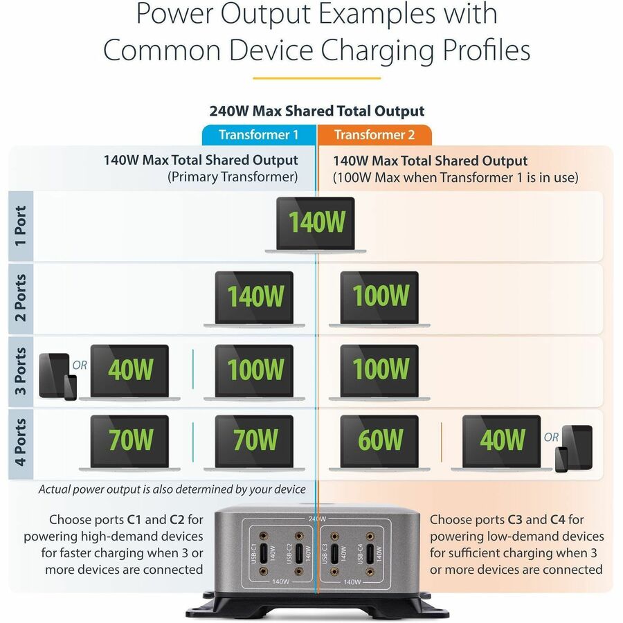 - HIGH-CAPACITY MULTI-DEVICE CHARGER: 4-Port USB-C charger delivers 240W total power to charge 4 laptops/devices simultaneously; Fast charges the high-performance MacBook Pro 16 (M3 / M4) from 0 to 50% in just 30 minutes; Each port supports 140W EPR (PD 3.1)