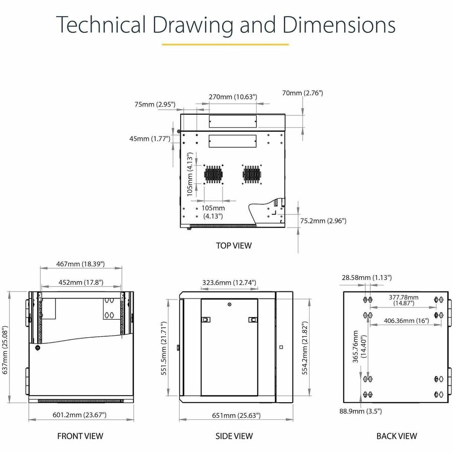 - EASY ACCESS: Wall-mount data rack features a 180° hinged, enclosed and lockable rack design with easy access to the rear of the mounted devices; Flexible locking server cabinet with reversible and removable front door and removable side panels