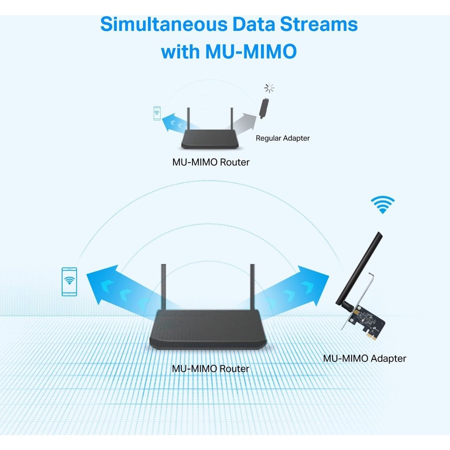 MU-MIMO for Higher Efficiency Works with MU-MIMO routers, which provide simultaneous data streams, boosting throughput and efficiency.