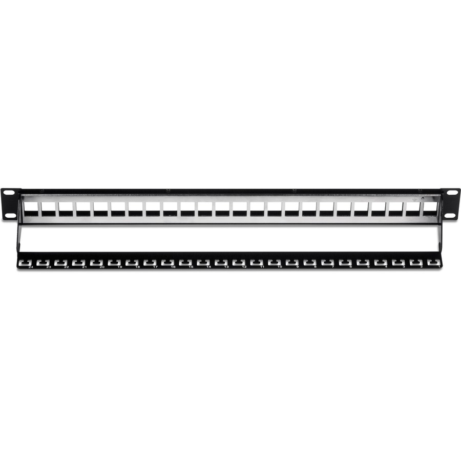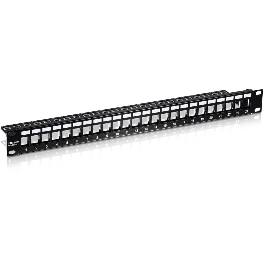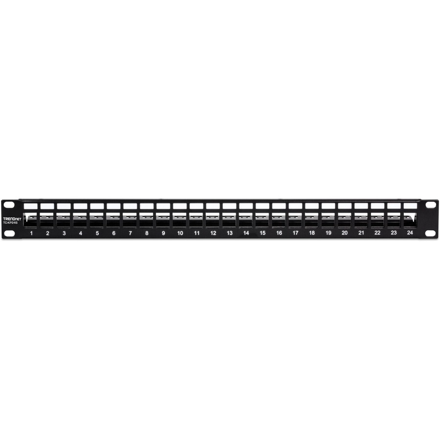 24-Port blank keystone shielded 1U patch panel is designed for use with TRENDnet’s Cat6A shielded keystone jacks (sold separately).