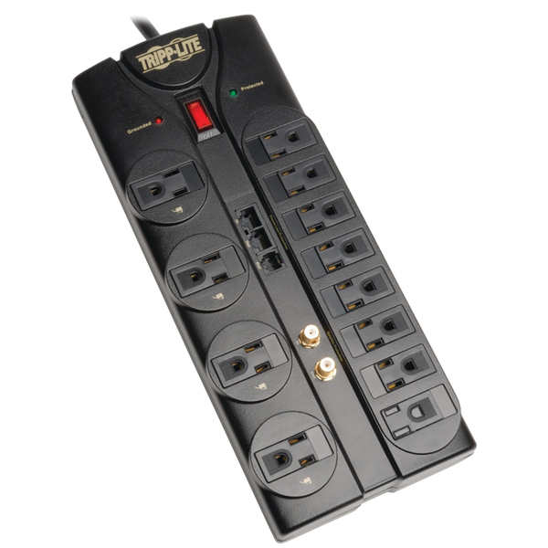 Tripp Lite by Eaton TLP1208SAT 12-AC Outlet, Telco, Coax, and Ethernet 2,880-Joules Protect It! Surge Protector Power Strip with Safety Covers, 8-Ft. Cord