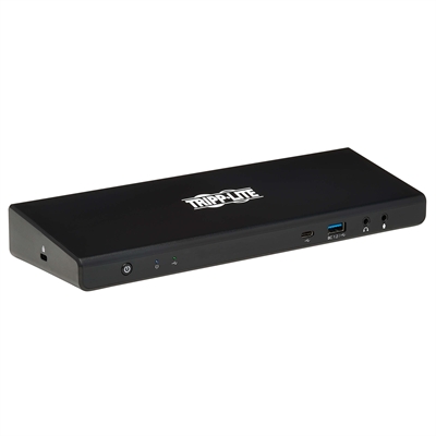 Tripp Lite USB-C Docking Station Turns Your Devices USB or Thunderbolt 3 Port into 14 New PortsThis universal USB-C dock with PD Charging expands the potential of your Windows laptop, Chromebook, smartphone or PC’s USB-A, USB-C or Thunderbolt 3 port. Connect the docking station using the included USB-C cable, and add 14 ports to your device: (2) 4K HDMI, (2) 4K DisplayPort, RJ45 Gigabit Ethernet, (4) USB 3.0, USB 3.0 with BC 1.2, USB-C PD Charging, USB-C data, (2) 3.5 mm stereoTransmits Crystal-Clear True 5K/4K Video and Digital Audio with 4:4:4 ColorThe HDMI and DisplayPort (DP) outputs support true 4K resolutions up to 4096 x 2160 at 60 Hz with 4:4:4 chroma subsampling for top-level PC gaming or using your HDTV as a PC monitor. When both DP outputs are connected to one DP monitor, that monitor will support 5K video up to 5120 x 2880 at 60 Hz.DisplayLink Technology Allows Connection of Multiple DisplaysBy downloading and installing the proper DisplayLink drivers to your host device, you may connect two external displays simultaneously. This allows you to display the image from the host computer on both monitors, extend your host desktop across both with different windows open on each, or combine all into one large display as a video wall. Connect multiple monitors (dual 4K at 60 Hz DP; dual 4K at 60 Hz HDMI; or 4K at 60 Hz DP and 4K at 60 Hz HDMI) in Extended and Mirror modes. Note: Mac OS laptops or computers will only extend to one monitor. The others will be mirrored.USB Hub Ports Connect Keyboards, Thumb Drives and Other PeripheralsOne USB-C and five USB-A ports accept USB peripherals, such as flash drives, mice, keyboards and printers. All support fast USB 3.2 Gen 1 data transfer rates up to 5 Gbps and are backward compatible with USB 2.0 and USB 1.1 devices. One USB-A port also supports BC 1.2 charging with 5V 1.5A (7.5W) of power dedicated to fast-charging your mobile device.PD Charging Port Charges the Connected Notebook, Tablet or Other DeviceConnect your host device to the USB-C Power Delivery port, which supports PD 2.0 charging of connected PD Charging-compliant devices, such as laptops, Kindles, iPads and Android smartphones, up to 20V 4.25A (85W). The included power supply, when plugged into an AC outlet, provides the charging power.Accesses a Wired Gigabit Ethernet NetworkThe RJ45 port offers access to a Gigabit Ethernet network when Wi-Fi is unavailable or when a wired connection offers faster speeds. Connect using a UTP cable (sold separately), and enjoy true 10/100/1000 Mbps Ethernet speeds for fast data transfers.Connects Speakers, Microphone and Other Audio EquipmentTwo 3.5 mm mini stereo jacks are convenient for connecting speakers, headphones and/or a microphone to your workstation. You can listen to music or record the latest episode of your podcast.Anti-Theft Lock Protects the Docking Station When You Aren’t AroundConnect a user-supplied computer/laptop security cable lock (not included) to this K-lock port to protect your source device against theft.Detachable USB-C Cable Connects in Either DirectionUnlike traditional USB cables that connect in only one direction, the reversible USB-C male connector plugs into a USB-C or Thunderbolt 3 port in either direction for an instant connection every time. A USB-C to USB-A adapter is included for connecting the docking station to your host devices USB-A port.