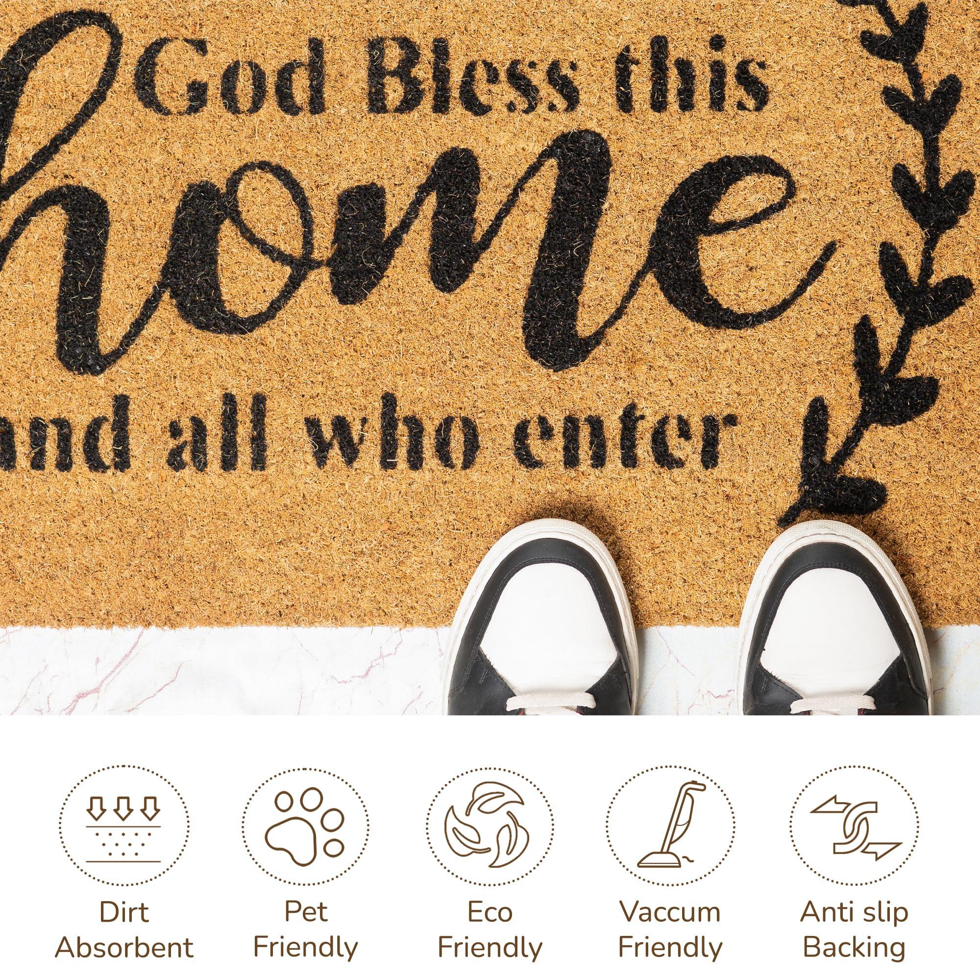 BEAUTIFUL & WELCOMING HOME PRINT: Make a statement with our beautiful home mat. The charming design adds a touch of warmth and personality to your entryway, creating a welcoming atmosphere for all who enter your home. Our coir doormat complements various home decor themes.