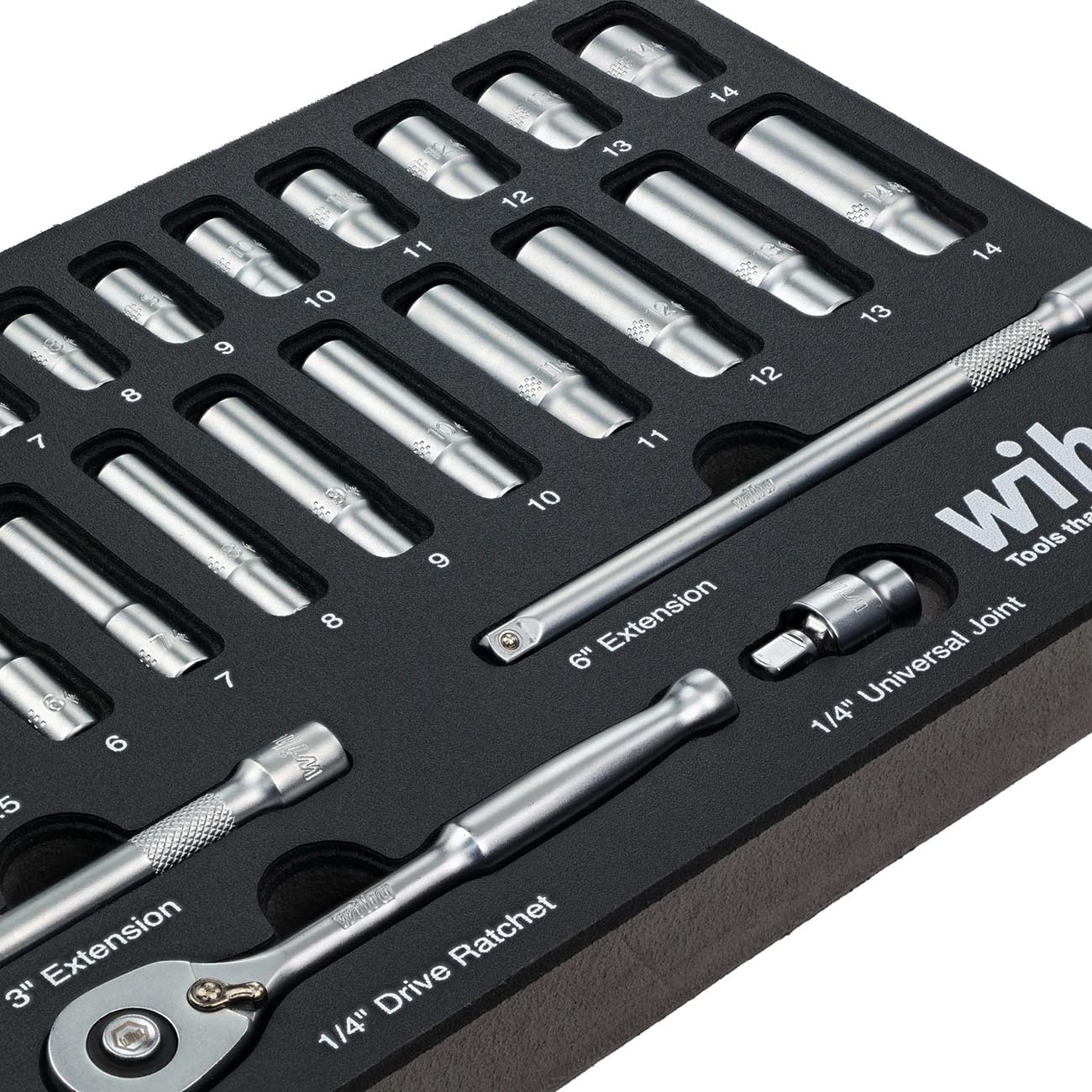 Wiha 1/4"e; Drive Professional Standard and Deep Socket Tray Set – Metric (27 Piece)
