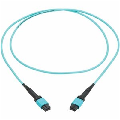 Eaton Tripp Lite Series 100G Multimode 50/125 OM4 Fiber Optic Cable (12F MTP/MPO-PC F/F), Type-A Polarity, OFNP, Aqua, 1 m (3.3 ft.), TAA