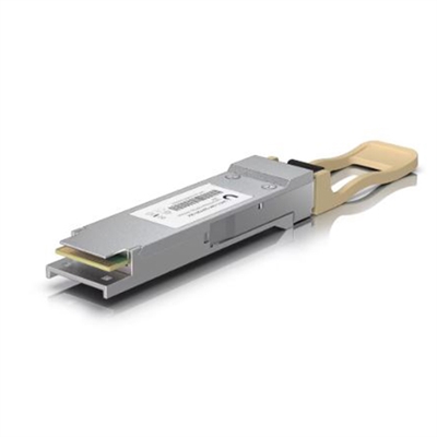 QSFP28 transceiver that supports 100G connections up to 100 m using multi-mode fiber with an MPO-12 Type B UPC connector. Max data rate: 100 Gbps. Compatible with QSFP28 and QSFP+ interfaces. MPO-12 Type B UPC connector. Supports multi-mode fiber connections up to 100 m