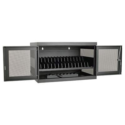 16-Port AC Charging Sync Station Cart Chromebook Laptop Tablet. This is similar to the CS16AC but has wider dividers and has 2 doors.